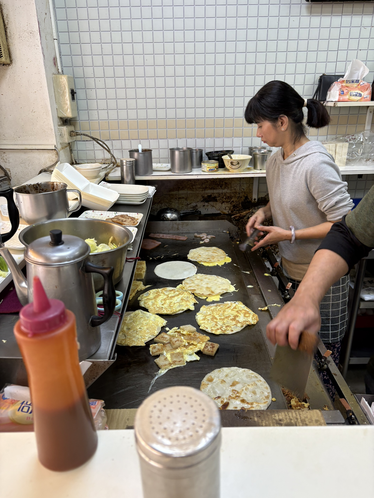 신주는 관광지가 아니라 그런지 확실히 타이베이와는 다르게 일반 가게에서 영어가 잘 통하지 않았다. 그래서 지도를 뒤져 찾아간 이 집의 이름은 모르겠다. 다만 바로 옆집도 조식 식당이었는데 옆집은 텅 비었고 이 집은 테이블도 만석인데 포장하려고 서서 기다리고 있는 사람들, 배달 라이더들도 서성이고 있는 것을 보니 나쁘진 않겠구나, 싶었다.