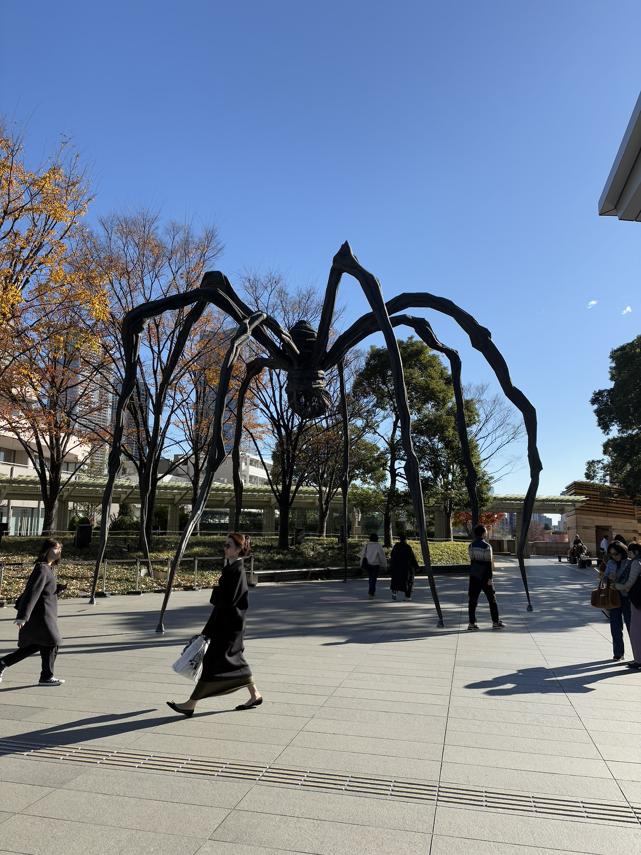 모리 미술관이 있는 롯폰기 힐즈 앞에는 커다란 거미 모양의 조형물이 있습니다. 높이 약 9m, 지름 10m의 이 커다란 금속 거미는 8개의 기다란 다리를 가지고 있고 배에는 대리석으로 된 알들을 품고 있습니다. 바로 루이스 부르주아의 작품, ‘마망’입니다.