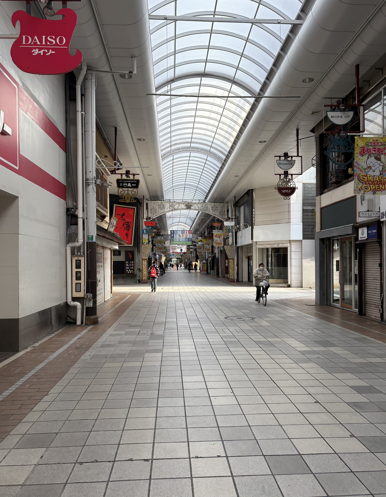 호텔 근처에는 일본식 상점가가 있었고 검색을 해보니 아침에 문을 여는 곳이 몇 군데나 있었다. 사실 아침 일찍 문을 여는 곳을 찾는 건 어렵지 않았다. 대부분의 우동집이 이른 아침 식사 시간에 맞춰 문을 열고 있었기 때문이다. 아침에 이런 아케이드를 걸어가는 건 왠지 고등학교 시절을 떠올리게 했다. 항상 새벽 등교했던 기억 때문인지…