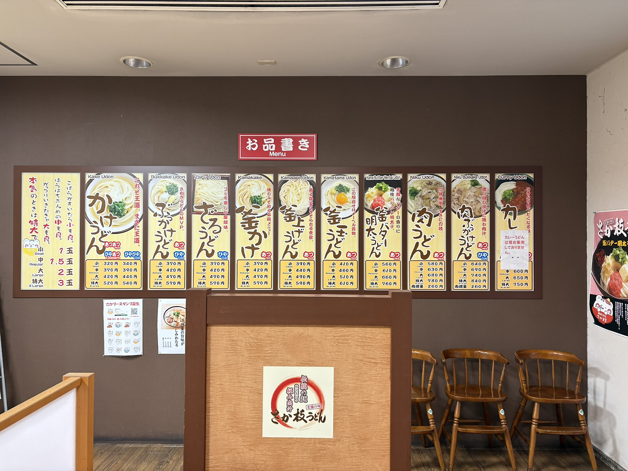 나오는 길에 보니 입구 쪽에 이렇게 메뉴가 쭉 써져 있었다. 한국에서는 아침에는 꼭 밥을 먹어야 한다는 것이 얼마 전까지만 해도 정석처럼 여겨지기도 했었지만, 탄수화물 폭발 우동이야 말로 아침에 먹으면 든든한 한 끼이지 않을까. 사실 우동집 안에는 건장한 남자 손님들이 대부분이었다, 하하.