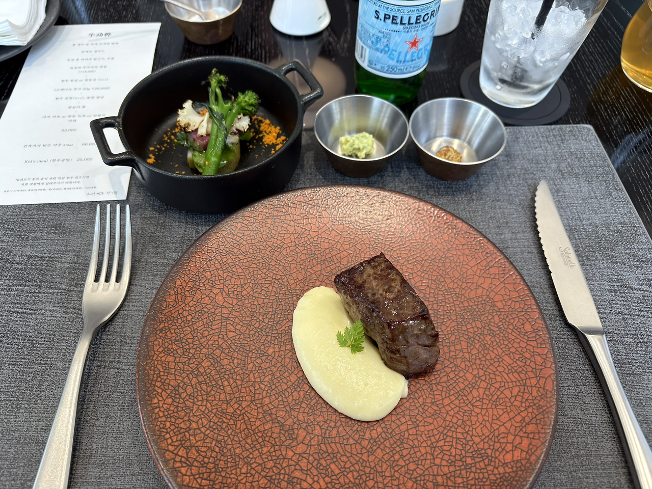 세 번째 코스인 스테이크. 역시 고기 질이 좋았고 곁들여 나온 야채도 좋았지만 마늘맛이 살짝 들어간 감자 퓌레가 딱 맞다고 느껴졌다.