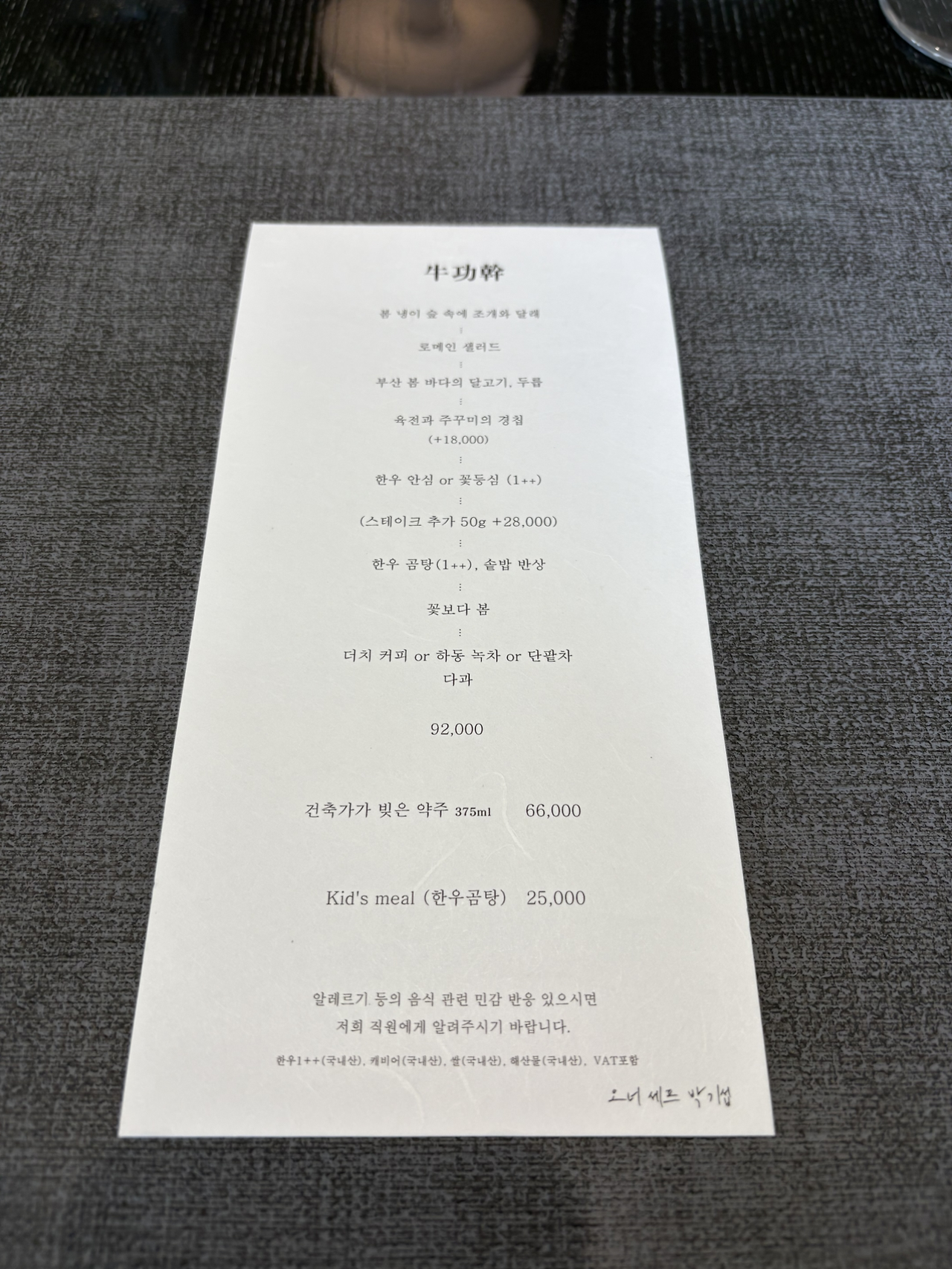 '소공간'은 곰탕을 메인으로 하는 집이다. 사실 곰탕이라는 메뉴를 그다지 좋아하지 않고, 곰탕을 좋아하지 않는 가운데 서울의 하동관 곰탕을 너무너무 좋아하고 만족하는 나로서는 미슐랭 별을 받은 곰탕은 메뉴 구성이 어떻게 되는 걸까 궁금하기도 했다.