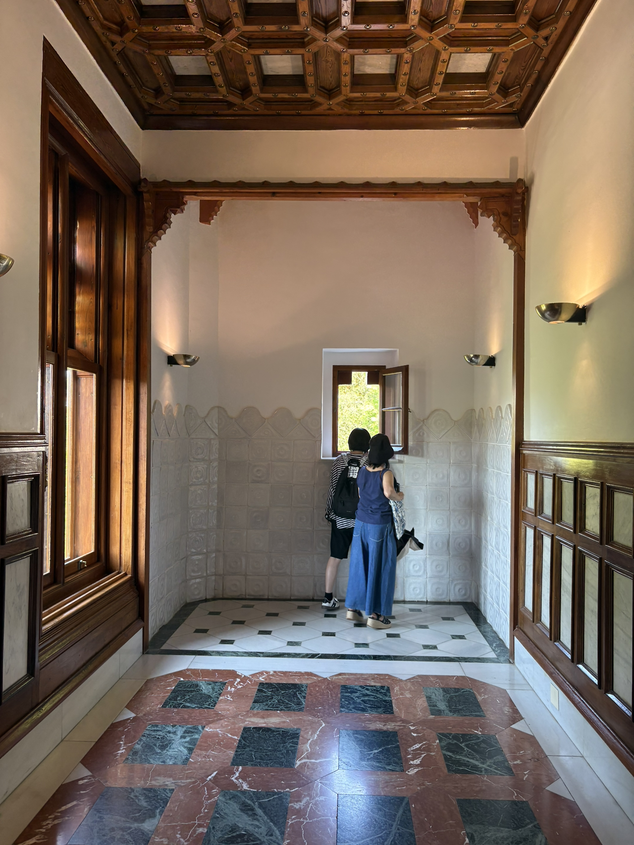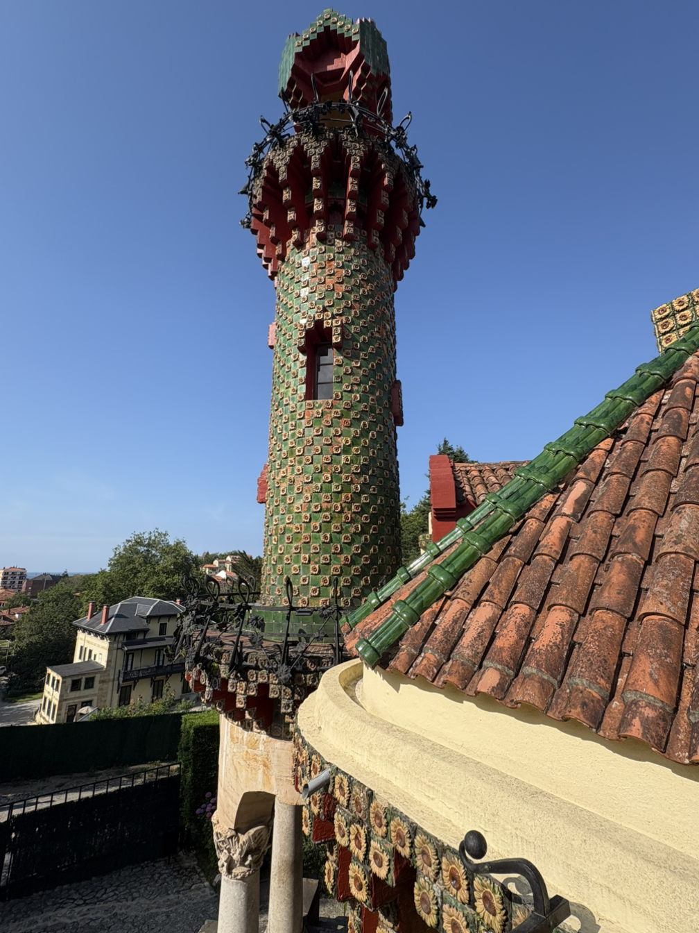 이 집은 가우디의 최대 후원자였던 구엘의 장인이자 코미야스의 후작이었던 안토니오 로페즈의 사촌인 막시모 디아스라는 사람의 의뢰로 지어졌습니다. 가우디의 초기 작품 중 하나로 가우디의 특징인 곡선은 찾아보기 힘들지만 화려한 색감과 하나하나 모양이 다 다른 해바라기 타일, 방마다 다른 문과 창문, 바닥과 천장의 타일 장식, 그리고 2층으로 올라가면 가우디가 직접 디자인한 가구까지 가우디의 특징을 느끼기에는 부족함이 없는 작품입니다.
