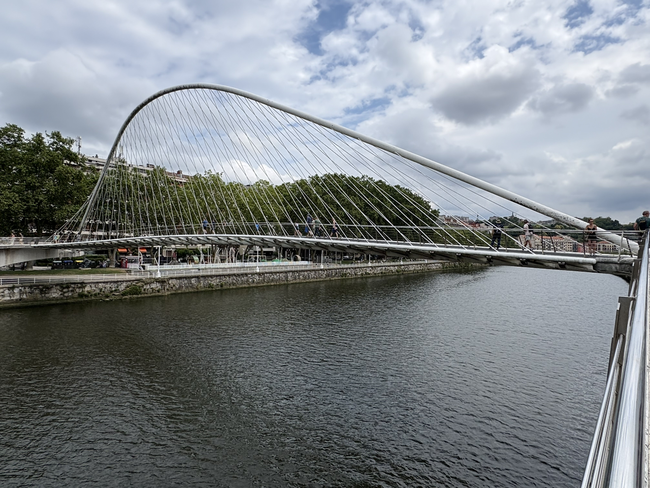 빌바오 구겐하임 미술관에서 도보로 5분 정도 떨어져 있는 이 다리의 이름은 ‘주비주리 Zubi Zuri’로, 바스크어로 ’ 하얀 다리‘를 뜻합니다. 네루비온 강을 걸어서 건너는 다리입니다.