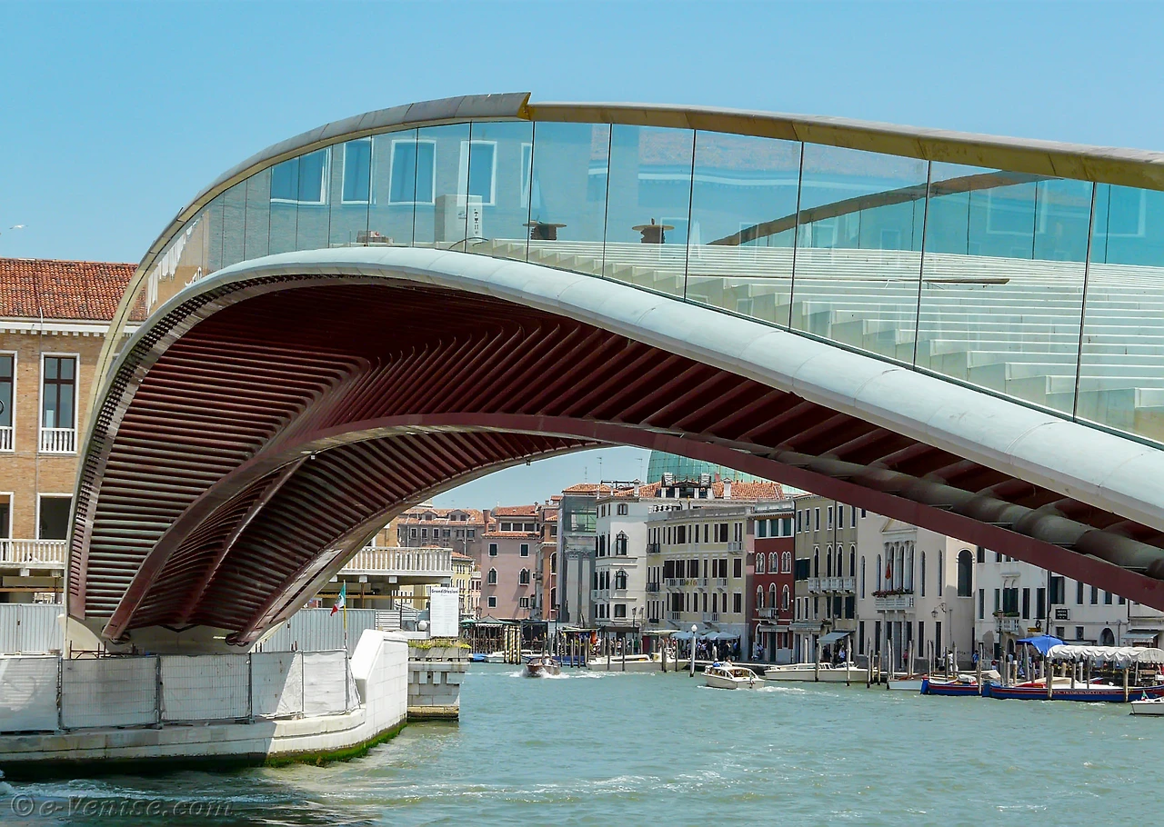 여러모로 유명한 칼라트라바의 또 다른 작품이 있습니다. 바로 베니스의 ‘코스티투치오네 다리 Ponte della Costituzione’입니다. 코스티투치오네 다리는 베니스의 대운하를 가로지르는 네 번째 다리이며, 그에서 짐작할 수 있듯이 하루에도 수많은 통행량을 자랑합니다. 유리로 만들어진 이 우아한 다리는 고전적인 베니스의 풍경 속에서 세련미를 뽐내지만 역시 이 다리를 완공하고 난 후 칼라트라바는 베니스 시에게 소송을 당하게 됩니다. 하루에도 수많은 관광객이 캐리어를 끌고 지나다니는 베니스에서 이 유리 다리는 너무도 쉽게 파손되었기 때문이죠. 더군다나 물이 젖기라도 하면 너무나 미끄러워 다리를 개통하고부터 매일같이 부상자가 속출하였습니다. 칼라트라바는 하루에 얼마나 많은 관광객이 캐리어를 끌고 지나갈 것인지 베니스 시가 미리 예측을 해서 자신에게 알려줬어야 한다고 대응했지만 법원은 당연히 베니스 시의 편을 들어줬습니다. 베니스 같은 유명 관광지에 캐리어를 끄는 많은 사람들이 지나다니는 것은 너무나도 명명백백한 일이라 당연히 건축가가 예상하고 계산했어야 하는 일이라는 것이죠. 베니스 법원은 칼라트라바에게 7만 8,000유로의 벌금을 부과했는데 납부가 되었는지는 모르겠습니다. 하지만 다리의 개통 이후 지금까지 수리, 보수 비용만 400만 유로 이상이 들었다고 하니, 그 벌금을 받은들 무슨 의미가 있을까 싶네요.
