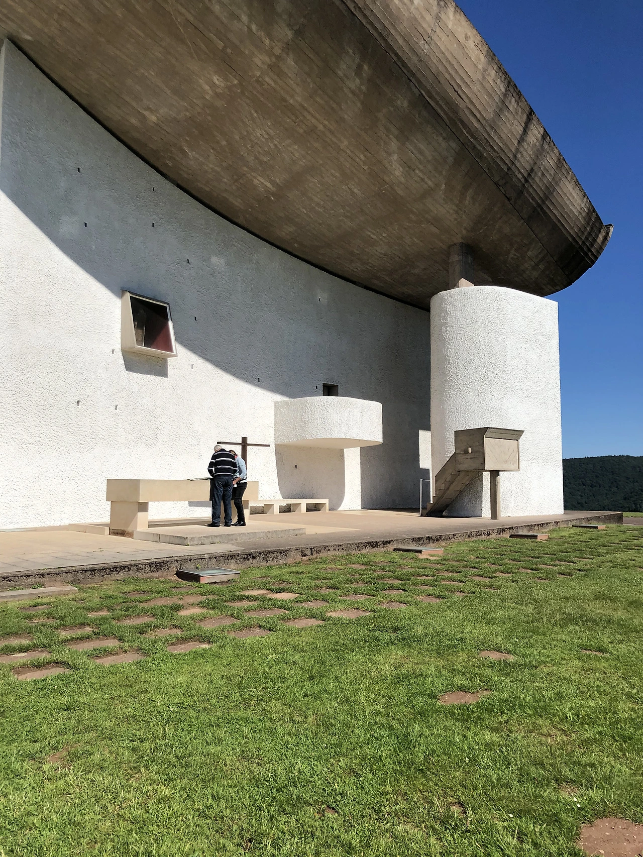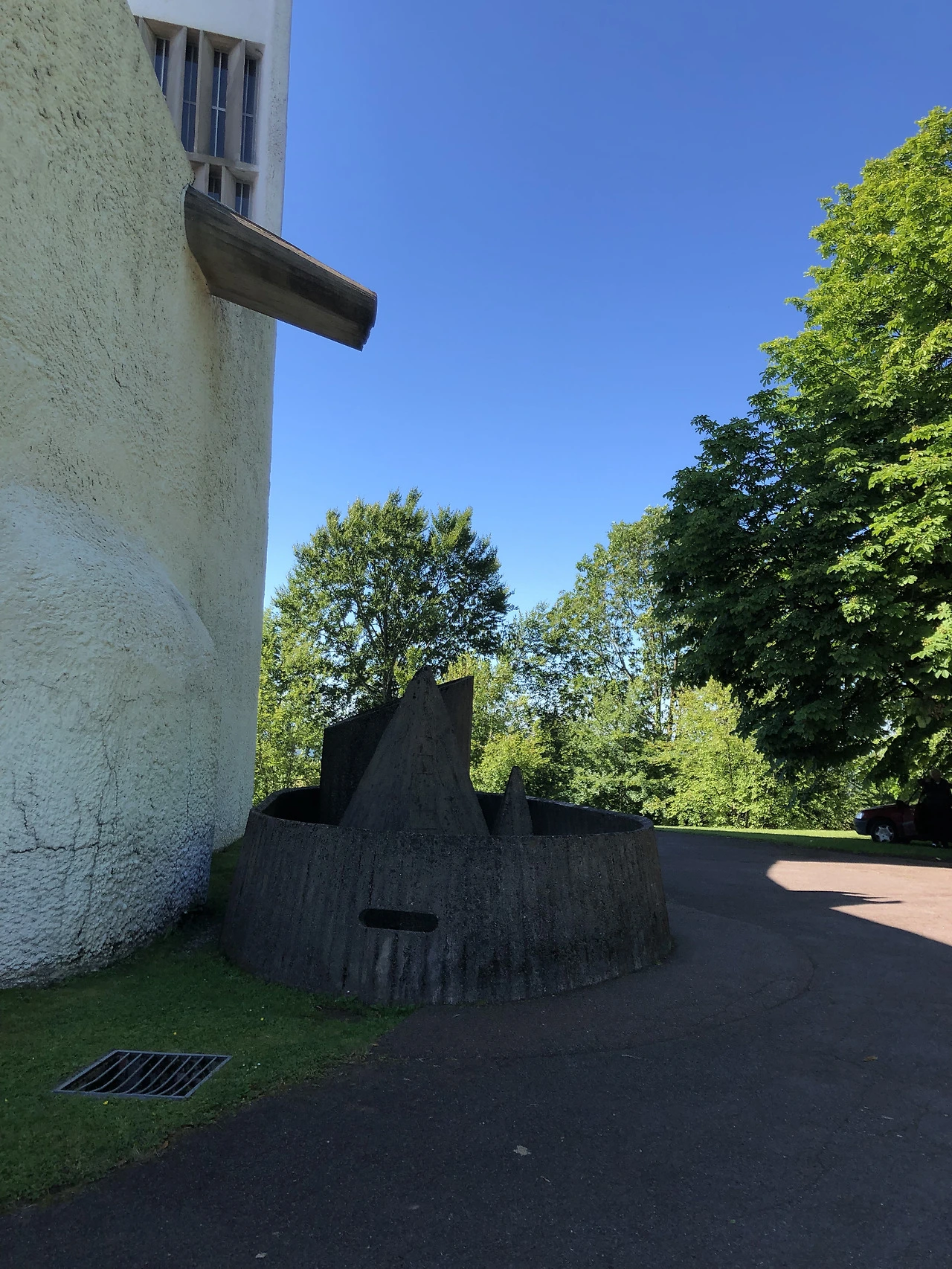 롱샹 성당의 정식 명칭은 Notre Dame de Haute, 즉, ‘위의 성당’입니다. 원래 언덕 아래 롱샹 마을의 중앙에 위치했던 성당이 폭격으로 파괴되면서 성당을 새로 지어야 했고, 새 성당을 언덕 위에 짓게 되면서 기존의 성당과는 구분하기 위해 ‘(언덕) 위의 성당’이라고 부르게 된 것이죠.