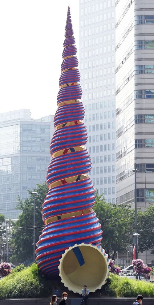 사진의 작품은 우리에게는 청계천의 다슬기 모양 조형물 스프링(Spring)으로 유명한 클라스 올덴버그와 코셰 반 부르겐의 작품 'Soft Shuttlecock'입니다.