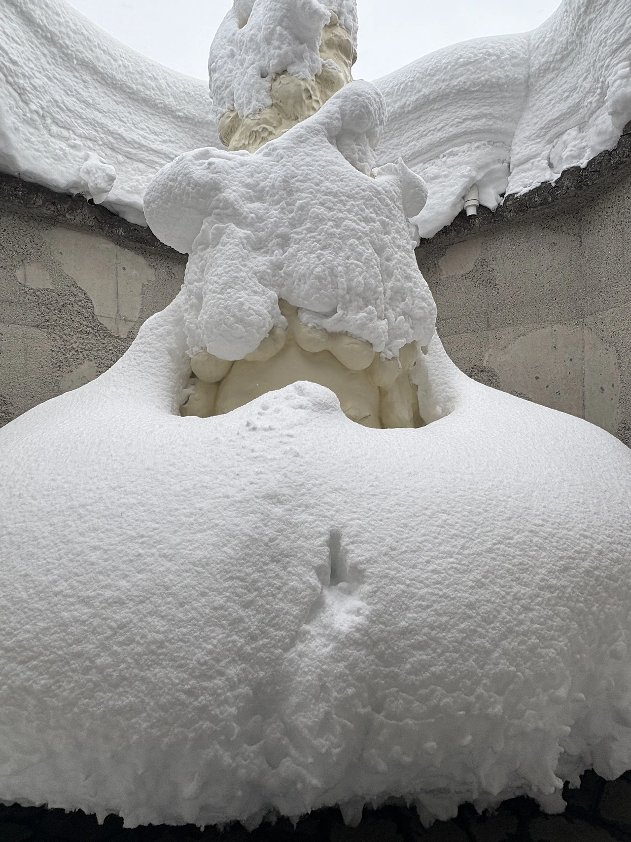 약 150cm의 눈이 쌓인 오늘, Miss Forest의 얼굴은 거의 알아보기 어렵고 마치 눈이 쌓인 거대한 트리 같은 모습이었습니다. 원래 Miss Forest의 모습을 볼 수 있는 사진을 첨부합니다. 이렇게나 쌓인 차가운 눈 속에 숨겨진 Miss Forest의 얼굴은, 한참 편안하고 편안해보입니다.