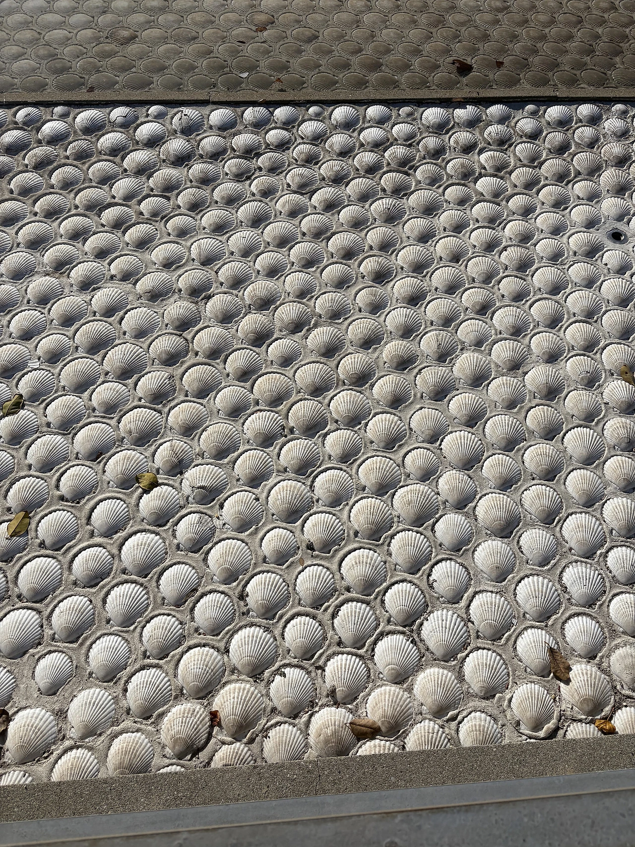 수변 공간의 바닥은 깨끗하고 흰 가리비 껍데기로 이루어져 있습니다. 착각일까요? 끊임없이 흐르는 물과 함께 더 반짝거리는 것 같은 느낌입니다.