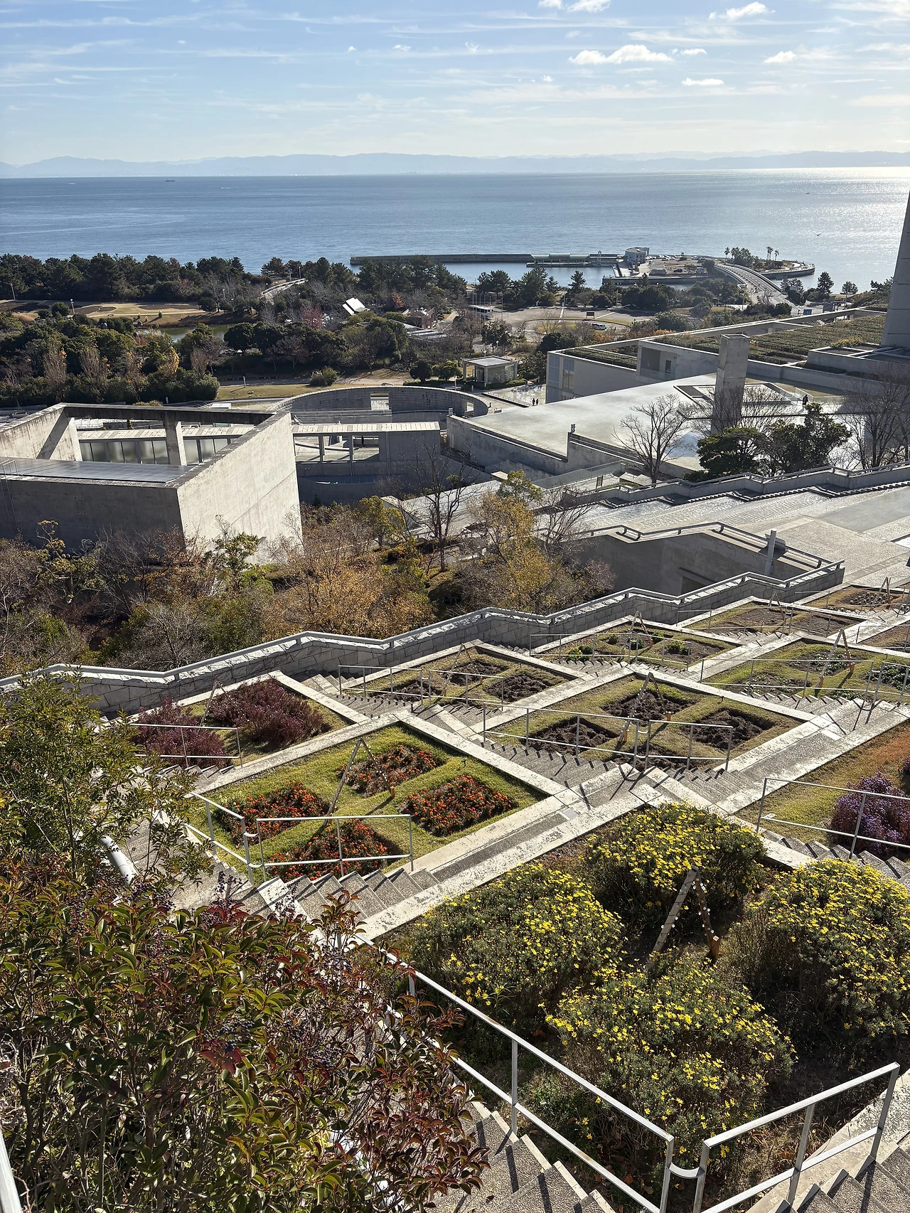 이곳의 가장 대표적인 시설 중 하나는 ‘백단원’이라 불리는 정원입니다. 백 개의 단으로 이루어진 정원인데, 주어진 경사 지형을 잘 활용했을 뿐만 아니라 한신대지진에 희생된 사람들을 위해 기도하는 마음을 담아 바치는 일종의 제단이기도 합니다.
