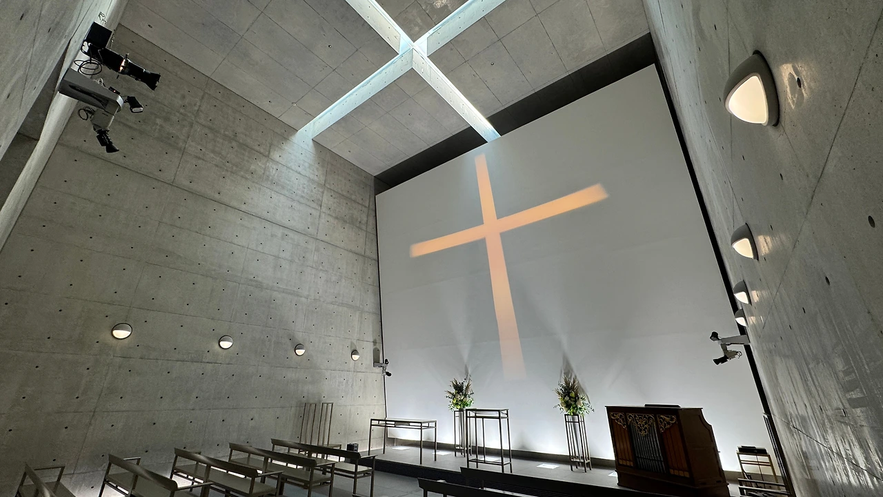 안도 타다오 버전 스테인드 글라스라 할 수 있는 빛의 교회입니다.