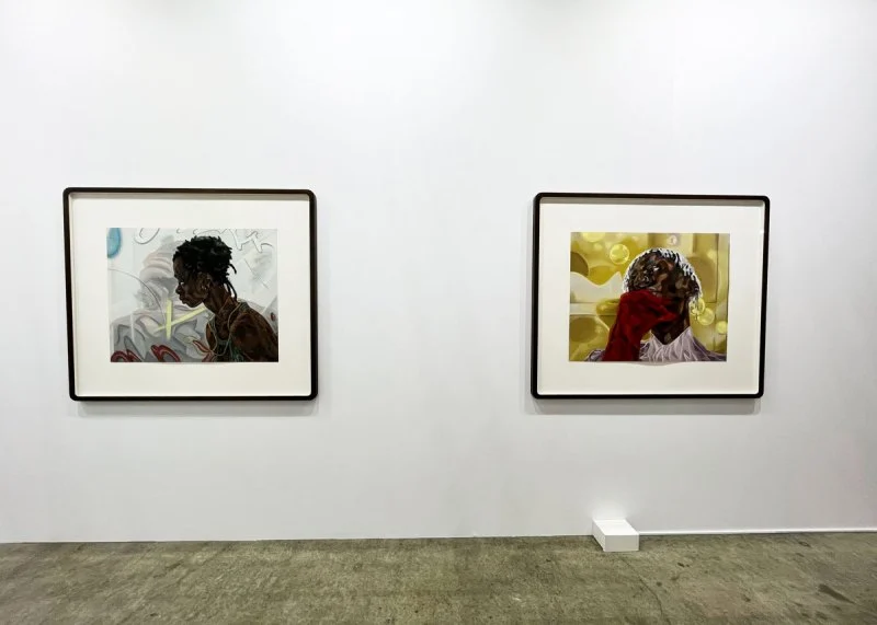 뉴욕 잭 샤인먼 갤러리(Jack Shainman Gallery)의 토인 오지 오두톨라(Toyin Ojih Odutola)는 2017년 휘트니 미술관(Whitney Museum)에서 선보인 작품과 같이 두 명의 나이지리아 귀족 가족을 중심으로 하거나, 2020년 런던의 바비칸 센터에서 의뢰받은 나이지리아의 원시 문명의 고대 신화를 소재로 한 작품을 선보입니다. 살짝 추상적인 배경과 분리된 인물이 특징적입니다.
