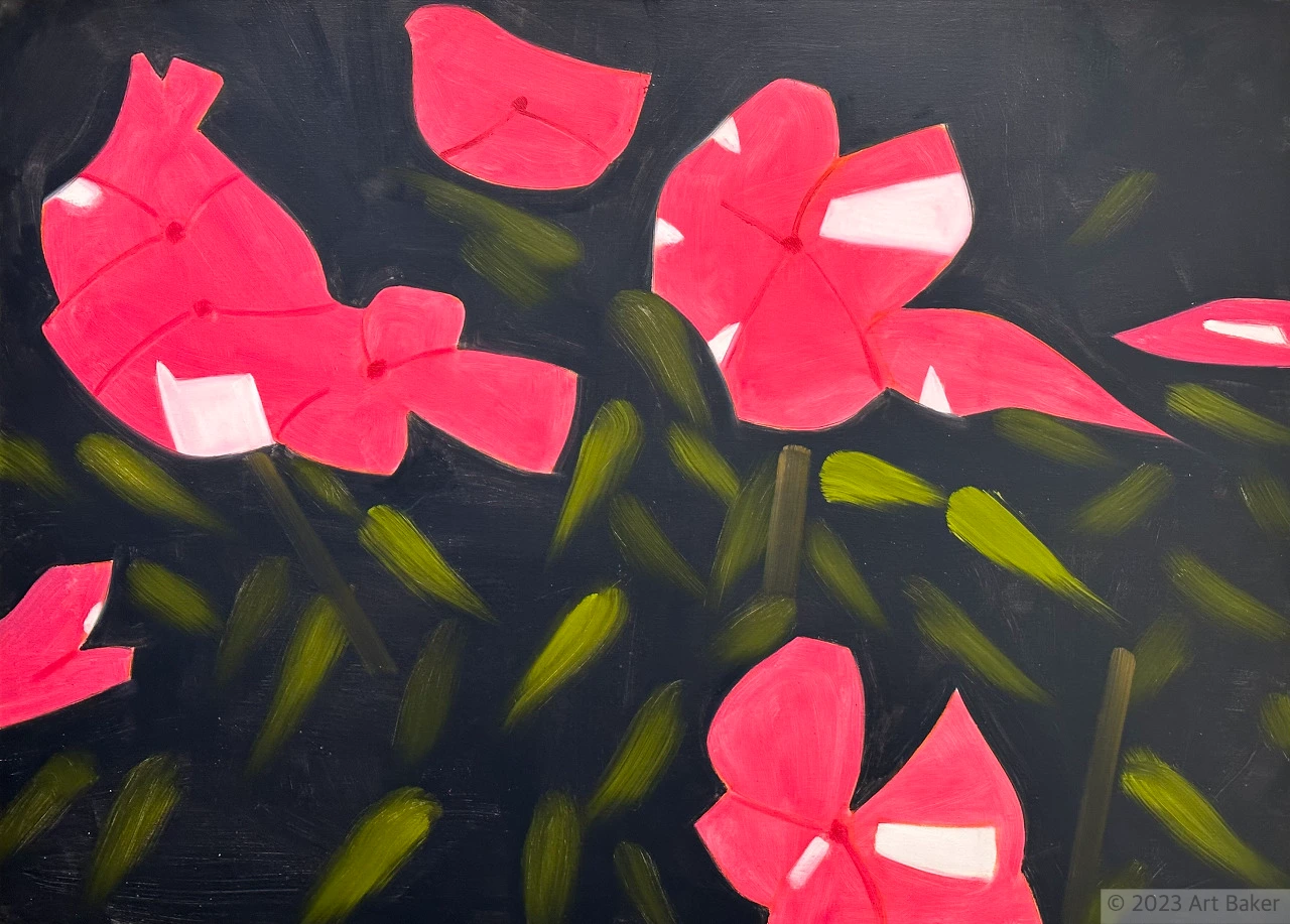 "나는 프린터처럼 그린다."라고 말하기도 했을 정도로, 알렉스 카츠는 작품을 정말 빨리 그리기로 유명합니다. 알렉스 카츠는 매우 빠르게 하나의 작품을 그리면서도 어서 다음 작품을 그리고 싶어 한다고 합니다.