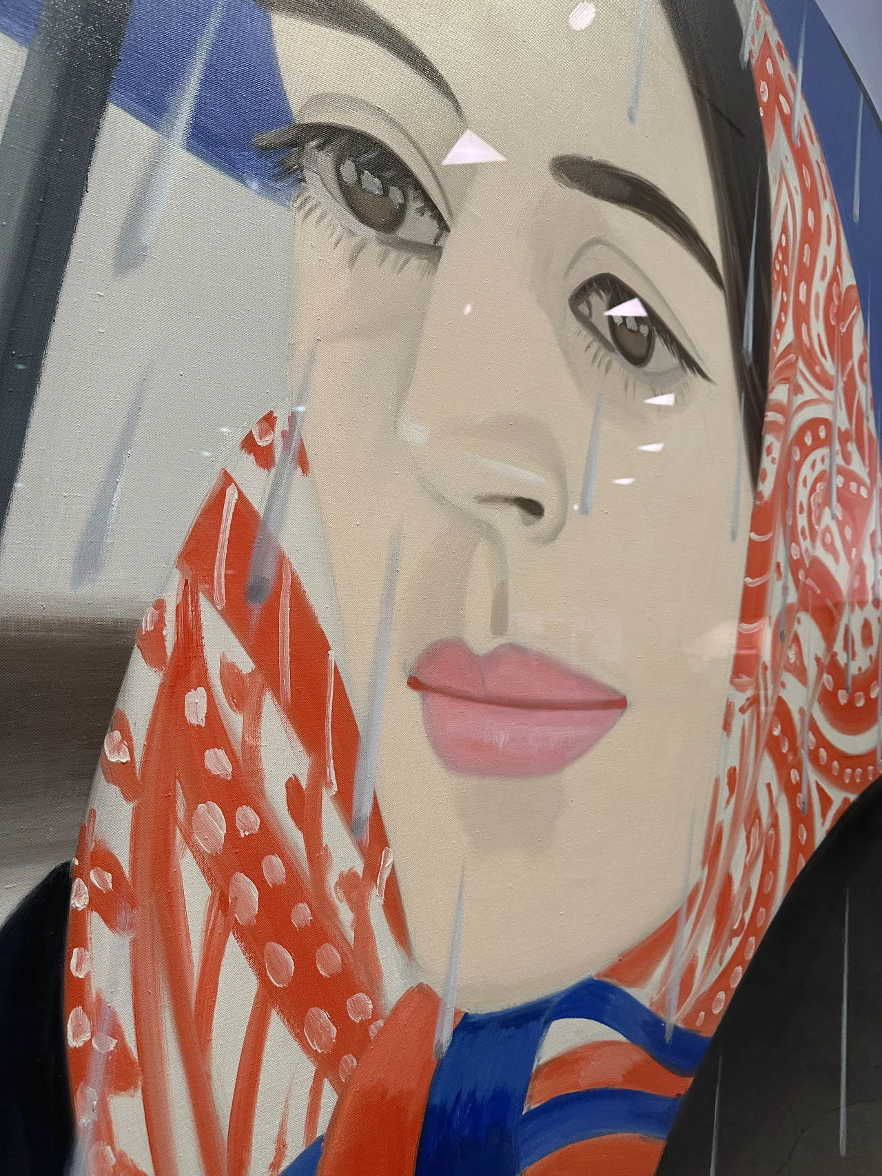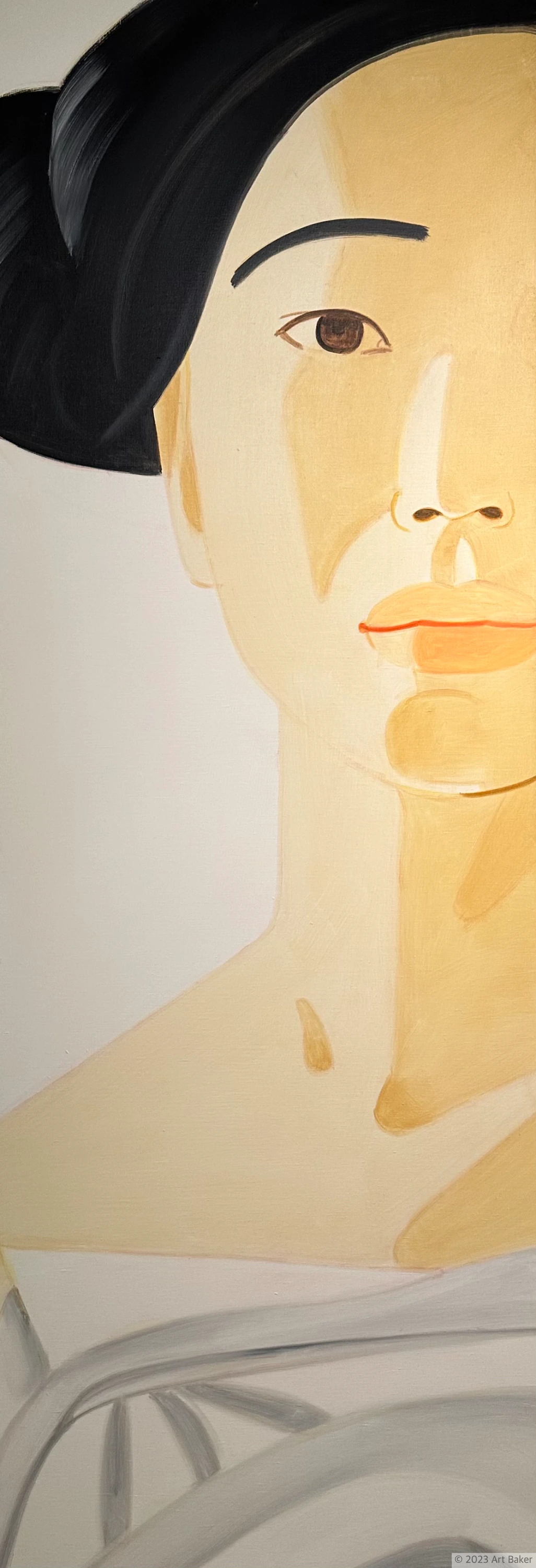 일본의 멀티미디어 예술가 마리코 모리(Mariko Mori)를 묘사한 이 작품에서는 알렉스 카츠가 풍경화에서 주로 집중했던 표면의 굴곡에 따라 변형되는 빛이 묘사되어 있습니다.