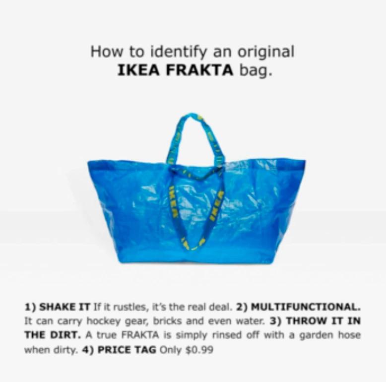 + ONE MORE 발렌시아가의 밈베이팅 마케팅은 패션 브랜드 베트멍(VETEMENTS)의 前 CEO 뎀나 바잘리아(Demna Gvasalia)가 발렌시아가의 크리에이티브 디렉터로 부임하면서부터 시작됐습니다. 밈베이팅의 귀재인 뎀나 바잘리아는 자신의 브랜드인 베트멍 또한 밈을 통해 젊고 힙한 이미지를 얻어 대중의 소비 욕구를 사로잡음으로써 성공시켰습니다.