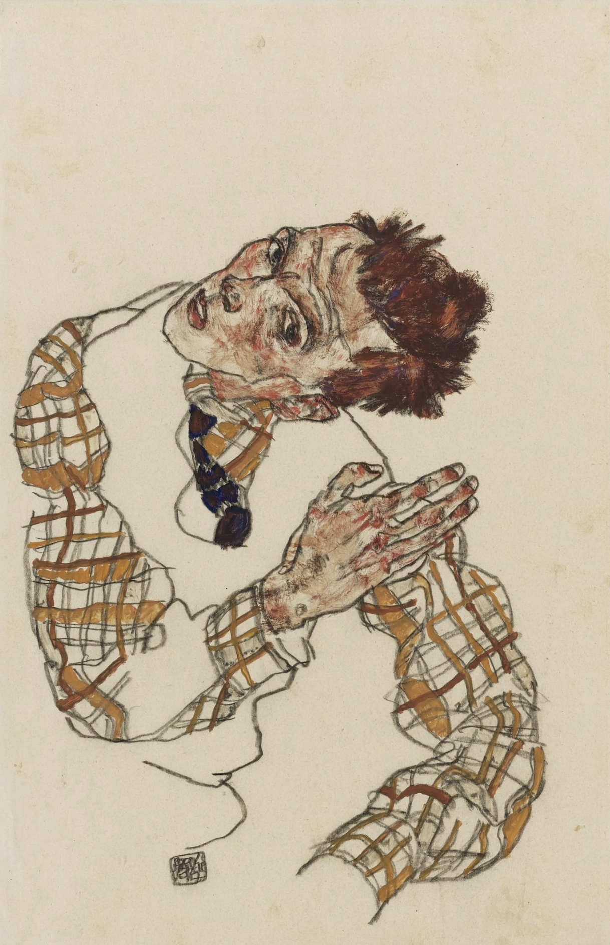 2) Egon Schiele <Selbstbildnis mit kariertem Hemd(Self-Portrait with Checkered Shirt)>, 1917