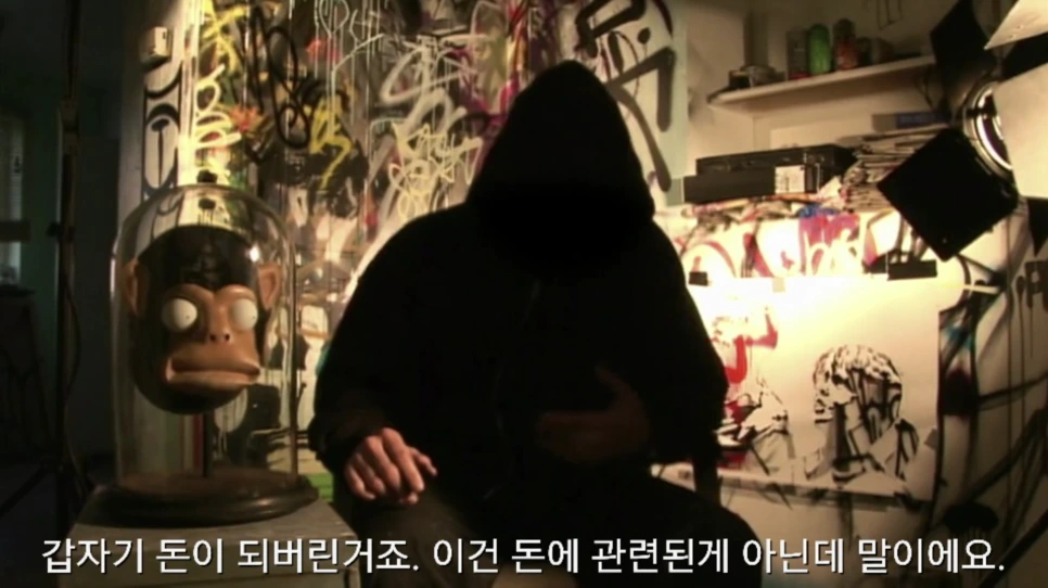 상업성이 짙은 현대미술에 반기를 든 뱅크시의 철학이 묻어나죠?