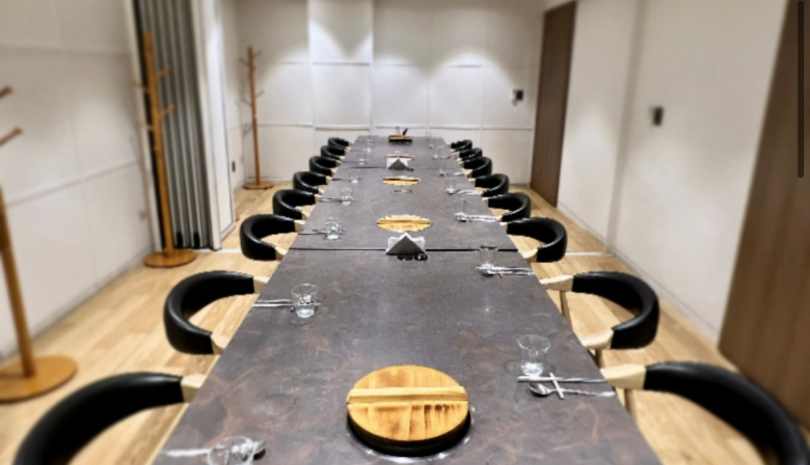 Similarly, for groups exceeding 12 people dining on dinner courses, a room accommodating 16 people is offered. Alternatively, it's also possible to order individual menu if the total cost matches that of the dinner course for a group of 12 people.