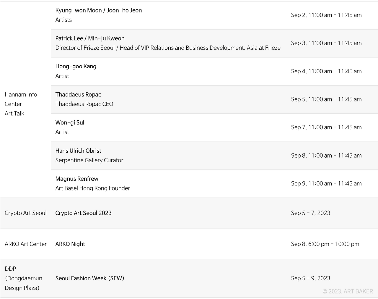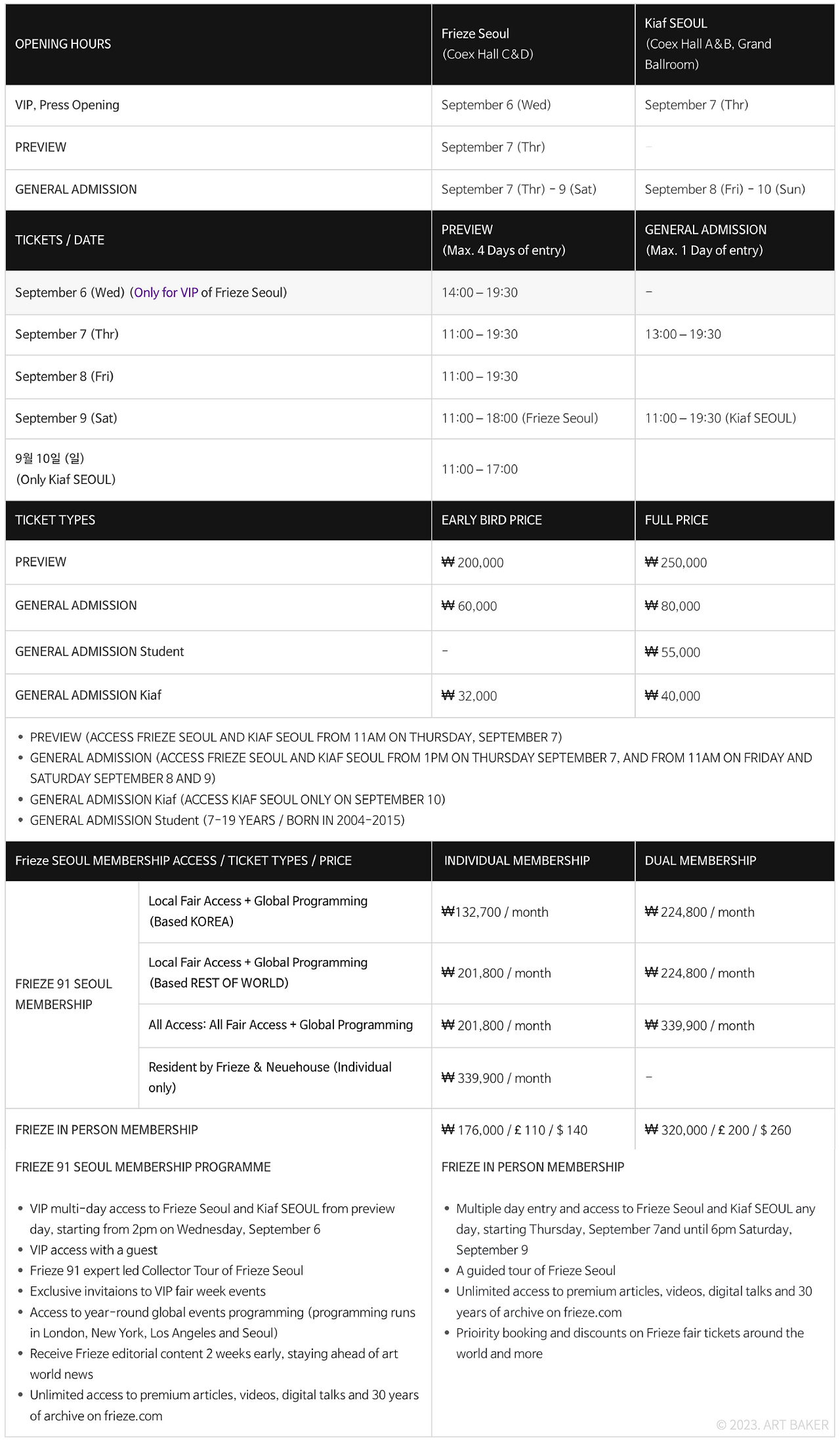 Booking for Frieze SEOUL 2023 (link)