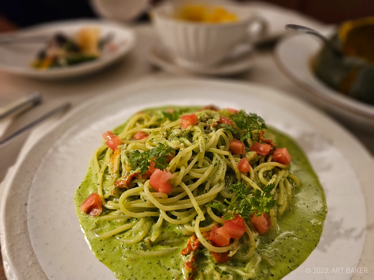 Drawing inspiration from the architectural design of the Seokguram World Heritage Site, this establishment has fused modern architectural elements to craft the ceiling of its main dining hall. This integration extends further, as the space within Ido Cheongdam seamlessly marries contemporary Italian cuisine with the harmony of East and West. The area holds a unique ambiance, with white porcelain-laden pillars and celadon-infused walls radiating a blend of energies. A special touch comes in the form of the gallery zone at the hall's center, offering monthly displays of artwork from diverse artists, adding an extra layer of charm to the experience.