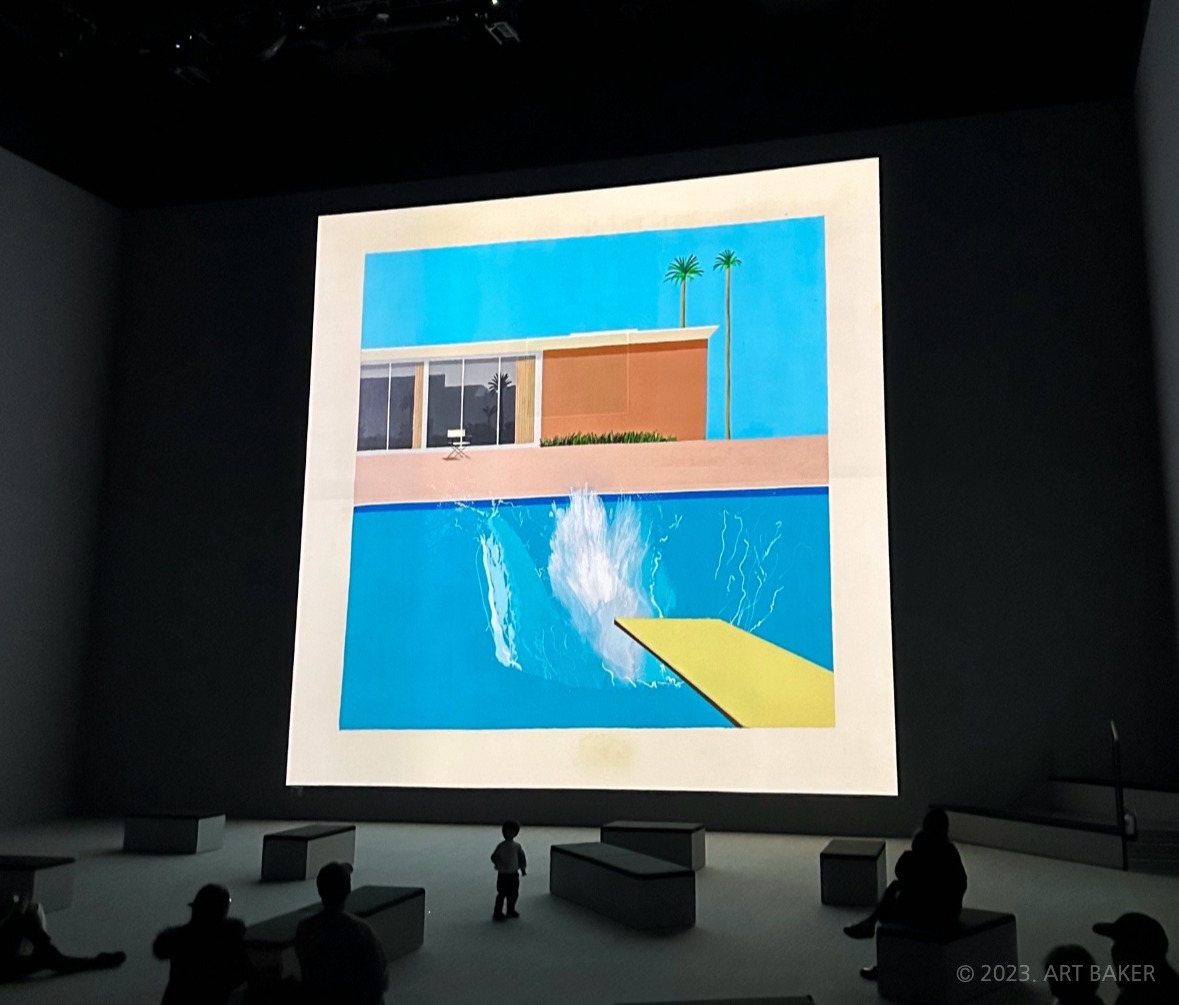 데이비드 호크니의 약 60년 간의 화업을 53분간 총 6개의 테마의 회화·사진·영상으로 만나볼 수 있었는데요! 이번 전시는 데이비드 호크니가 직접 기획 단계부터 3년 간 제작에 참여한 작품으로 노장의 새로운 미디어에 대한 도전이자 피·땀이 담겨있는 새로운 형태의 거대한 '미디어아트'이자 '설치미술'이라고 볼 수도 있겠습니다.