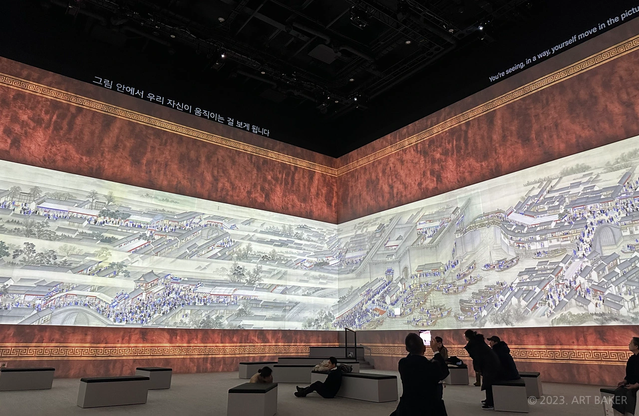 몰입형 전시관인 '라이트룸 서울'의 벽·바닥 등 전시장 전체 공간에는 미술 작품이 디지털로 구현되어 있습니다. 몰입형 전시는 마치 작품 속에 들어와 있는 기분이 들게끔 음향과 빛을 이용해 작품을 하나의 체험 공간으로 만드는 새로운 전시 형태입니다.