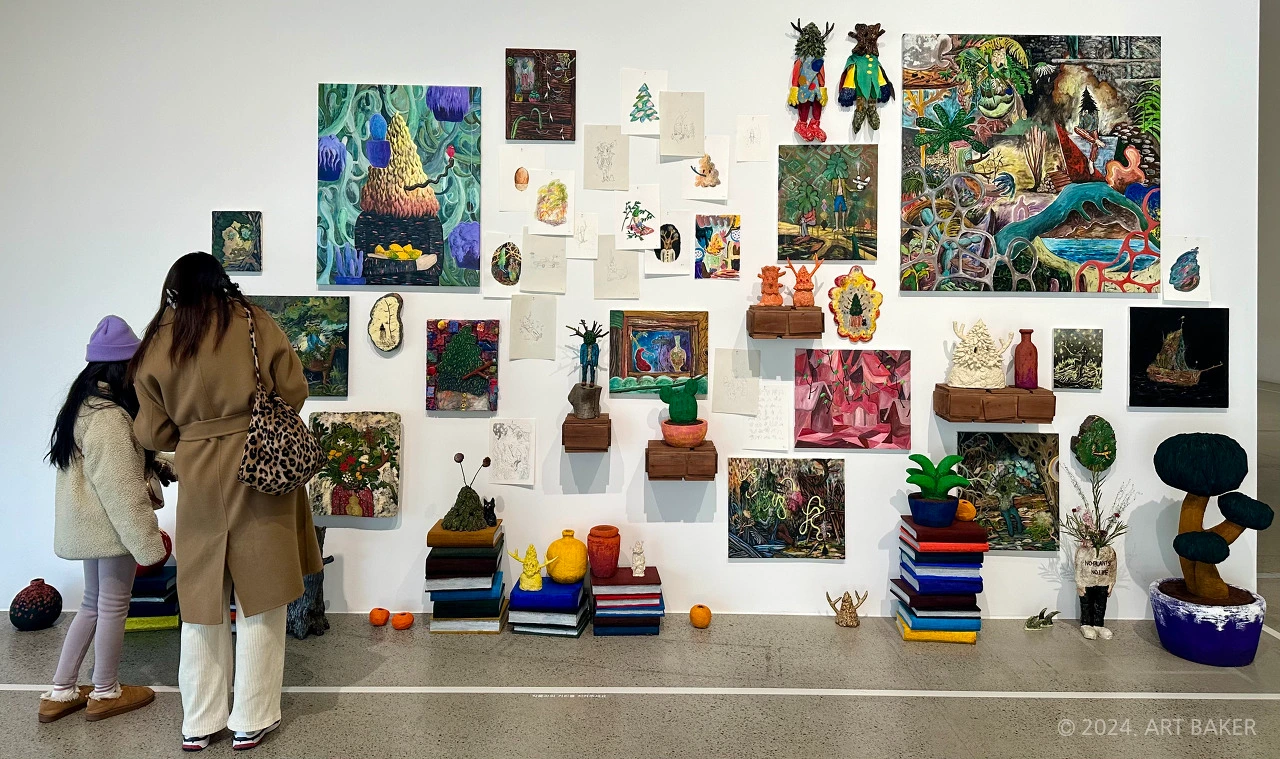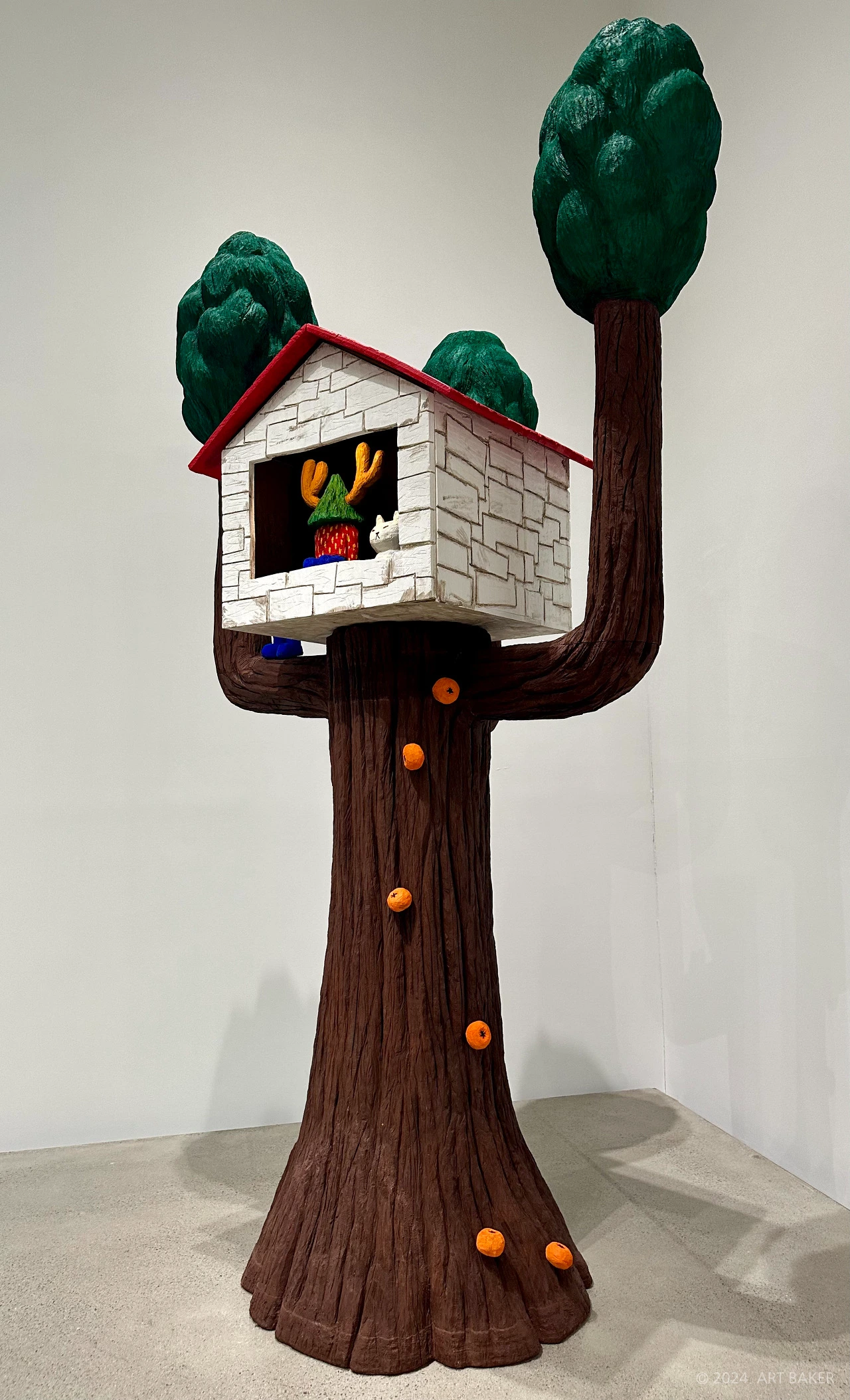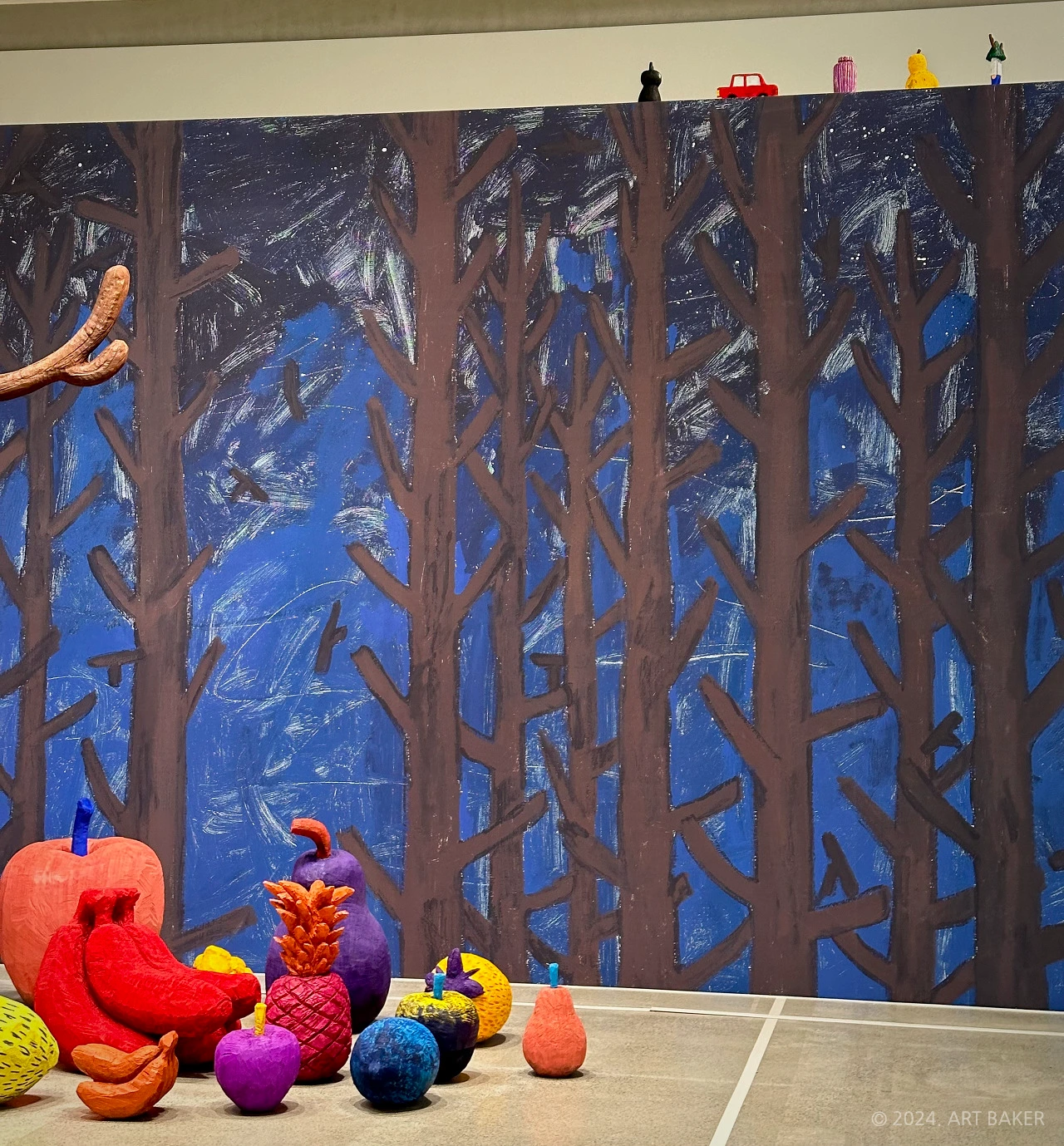 이번 전시에서 재미있었던 관전 포인트 중 하나는 바로, 유이치 히라코가 색감을 사용하는 방식이었습니다. 여기, 두 트리맨이 입은 옷도 참 감각적이고 재미있지 않나요? 게다가, 두 트리맨 주위에 놓인 과일들의 색감을 보세요!