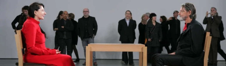 둘 사이에는 어떤 언어와 단어도 필요 없는 무언의, 그러나 억겁의 세월이 켜켜이 쌓아 올린 눈빛으로 주고받는 대화가 한동안 이어집니다. 머리보다 마음과 몸이 먼저 반응하듯, 이윽고 두 사람은 서로를 향해 팔을 뻗어 테이블 위로 손을 맞잡습니다. 대화를 나누던 그들은 바로 세르비아 출신의 세계적인 행위 예술가 마리나 아브라모비치(Marina Abramović, b.1946-)와 그의 옛 애인이자 예술계의 가장 유명한 듀오로서 12년간 14개의 ‘관계 작업’을 함께 해왔던 울라이(Ulay; Frank Uwe Laysiepen, b.1943-2020)입니다. 두 사람이 마주했던 배경은 2010년, 뉴욕 현대미술관(MoMA)에서 열린 회고전 <The Artist is Present(마리나 아브라모비치가 여기 있다)>입니다.