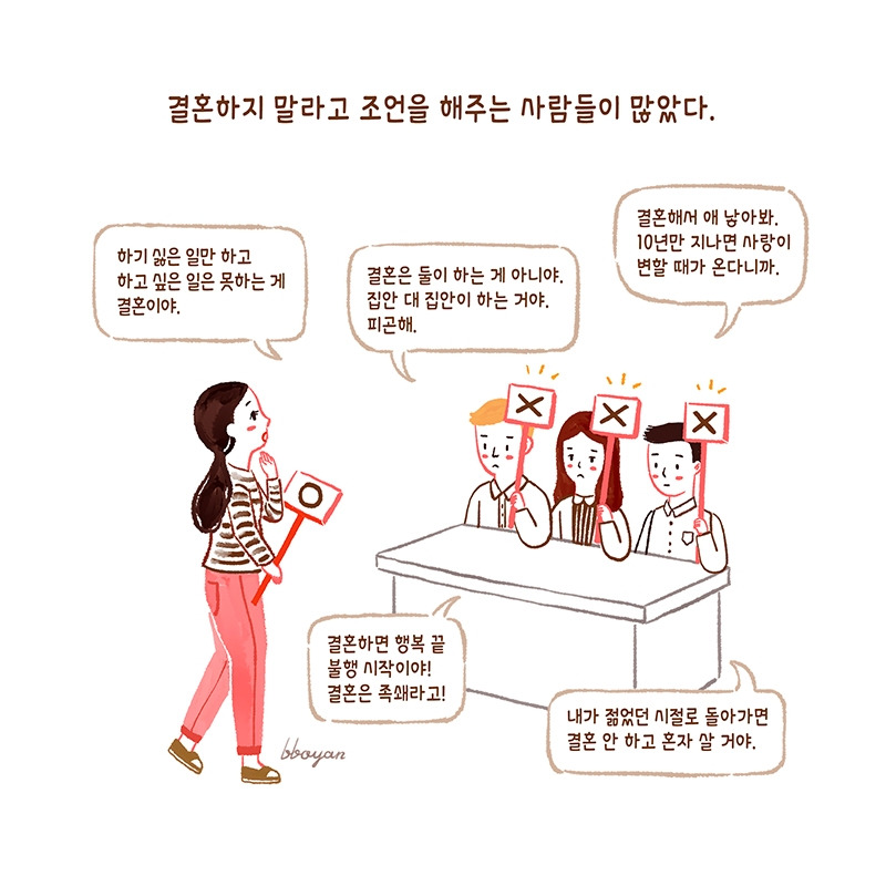 결혼 전 결혼하면 안 되는 이유에 대해 수도 없이 들었다. 그럼에도 많은 사람들은 ‘연애' 대신 굳이 ‘결혼’을 선택한다. 내 사랑을 만나 새로운 가정을 꾸리고 단란하게 살고 싶어서다. 하지만 결혼은 결코 로맨틱하지 않다.