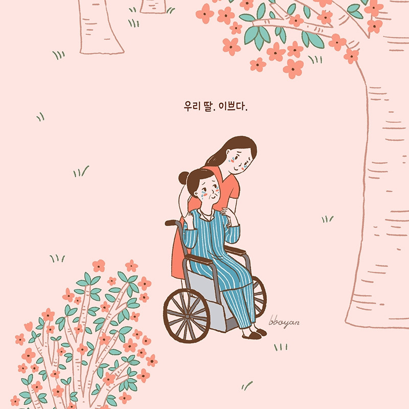 같이 밥 먹고 예쁜 옷 보러 가면 눈을 반짝이며 좋아하던 엄마. 늘 내 편이 되어 주고 필요한 것을 줄 때마다 행복해하던 엄마.