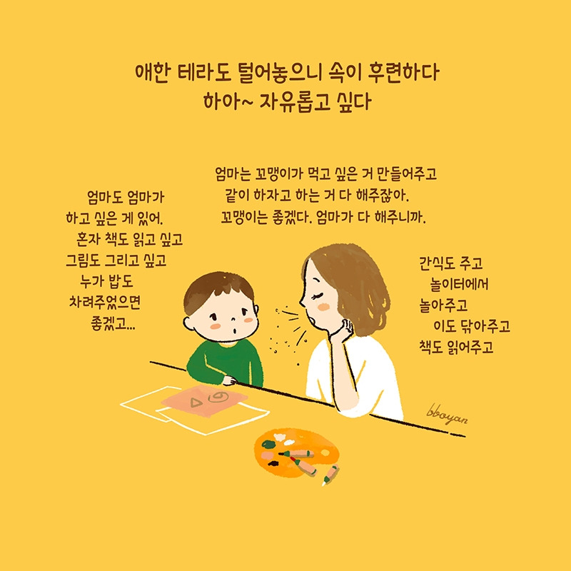 꼬맹이와 살면서 내 감정을 아이에게 털어놓은 적이 있다.