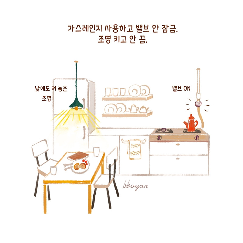 따라다니면서 청소하고 정리하고 버튼을 끄며 가스와 전기를 차단하는 내 모습은 불난 집에 불 끄러 다니는 소방관 같다. 남편에게 집안일에 조금 더 예민해지면 좋겠다고 말했더니 자신은 양호한 편이라고 한다.
