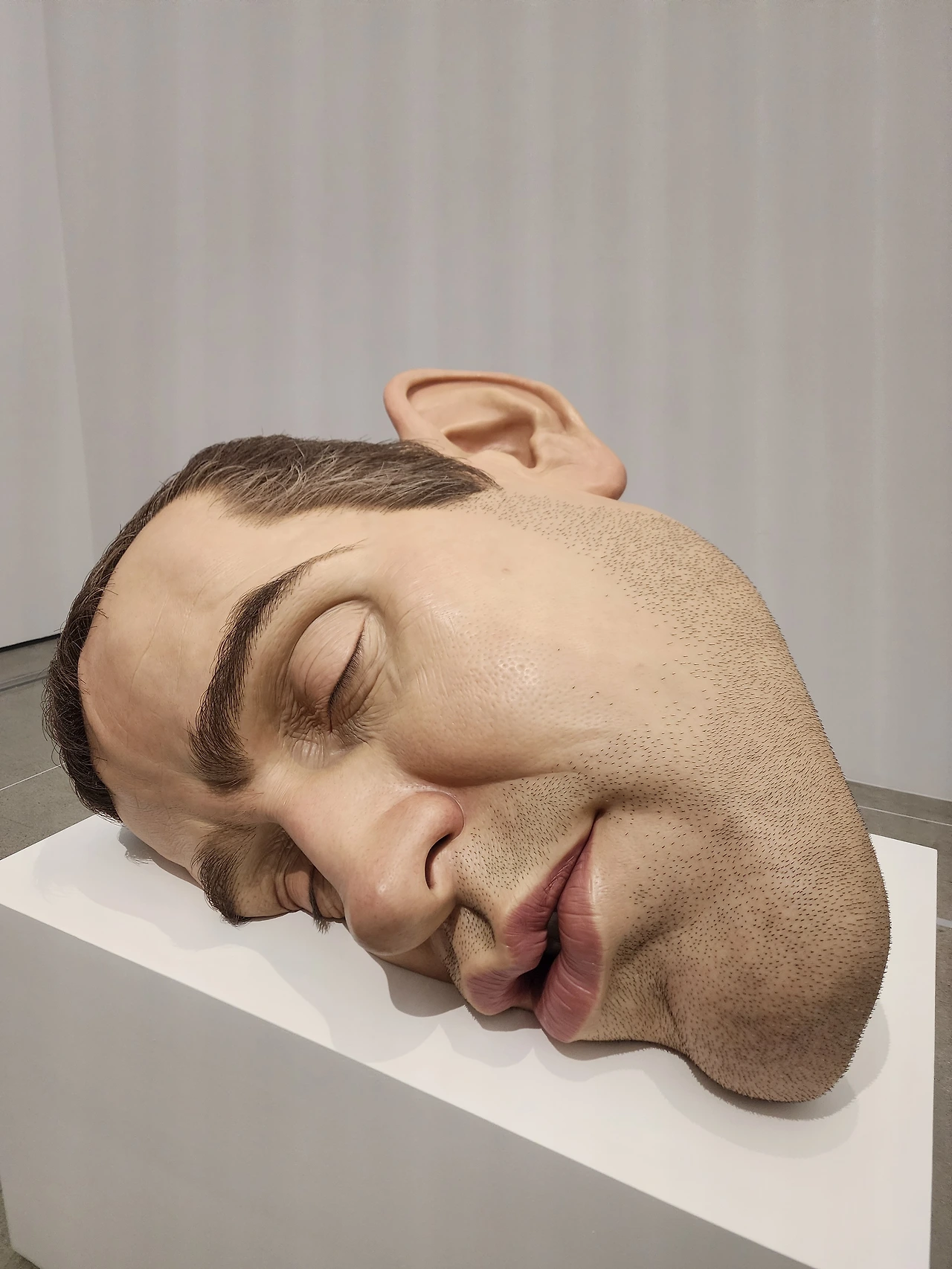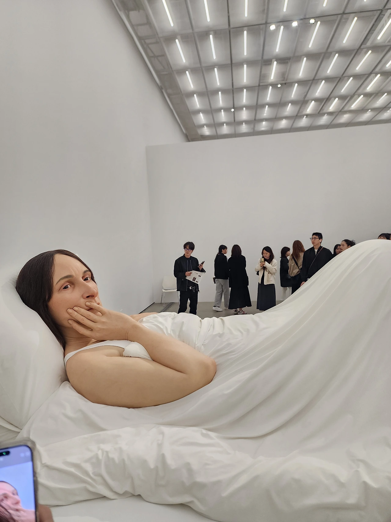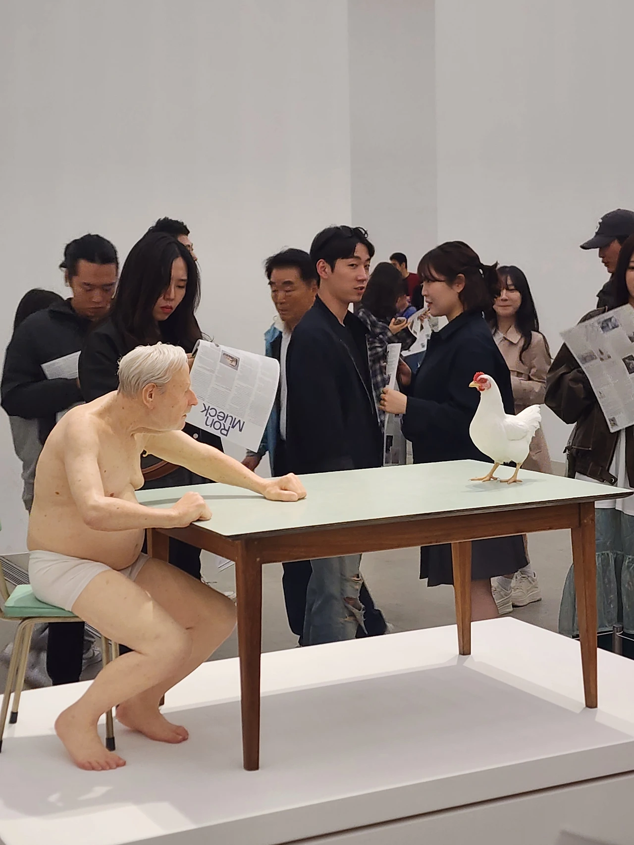 따라서 극사실주의 작품을 감상할 때는 단순히 “진짜 똑같이 잘 만들었다”는 기능적 감탄에 그치기보다, 조각품과 동화되어 과장된 모조품 속에 내재된 사회적·철학적 가치를 읽어내려는 노력을 하면 더 재미있는 관람이 될 거 같습니다.