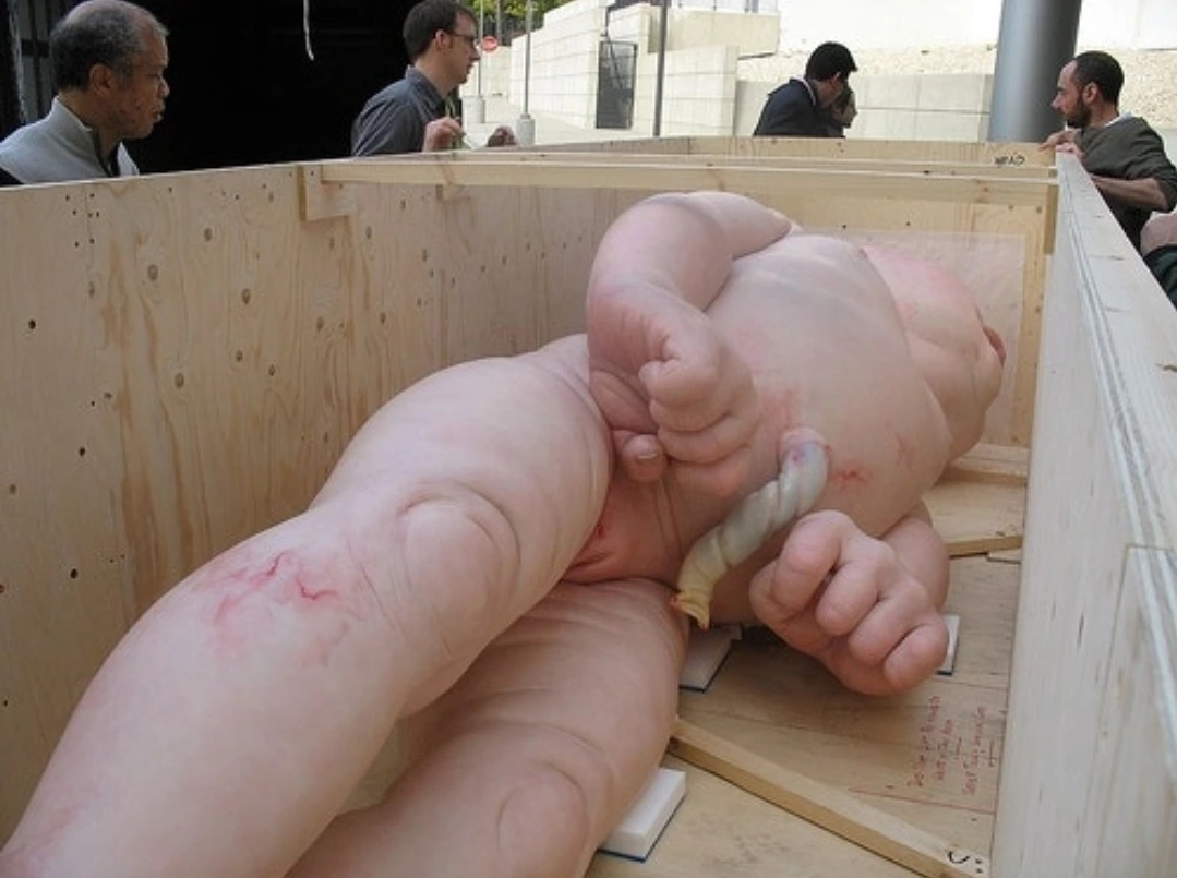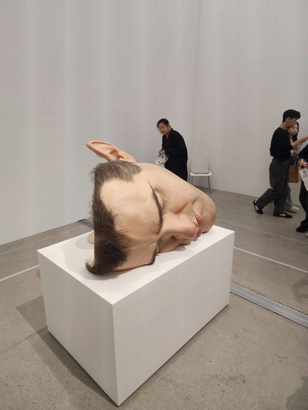 현재 국내에서 가장 주목받고 있는 전시 중 하나, 국립현대미술관에서 열리고 있는 극사실주의(하이퍼리얼리즘, Hyperrealism) 작가 론 뮤익(Ron Mueck)의 전시를 소개하려고 합니다. 위 작품이 현재 진행 중인 오늘 소개할 작가 론 뮤익의 대표작입니다. 제가 너무 좋아하는 작가라 저의 SNS 첫 게시물도 이 작가에 대한 것이었어요.