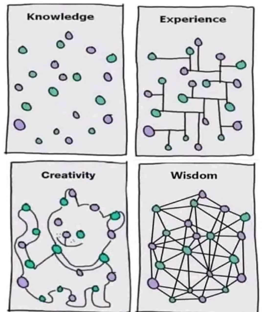 지식과 경험, 창의성에 대한 이런 짤을 본 적이 있다. 항상 디자인하는 일이 흩어진 정보들을 모아 별자리를 그리는 일 같다고 생각했었는데 이와 비슷하다. 어떤 정보와 아이디어를 수집하고 조합하느냐에 따라 바둑판같은 격자가 그려질 수도, 고양이가 그려질 수도 있다.