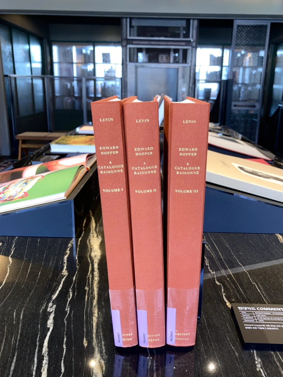 휘트니 박물관에서 출간한 에드워드 호퍼(Edward Hopper)의 카탈로그 레조네입니다. 이 카탈로그 레조네는 아무나 출판할 수 있는 게 아닌 거 알고 계셨나요? 카탈로그 레조네는 검증된 작품들을 모은 도록을 뜻하는데요. 카탈로그 레조네 수록 여부가 작품의 진위 여부 판단에 있어 중요한 기준이 되기 때문에 작품을 누락시키지 않아야 합니다. 그래서 질적/양적으로 갖춰진 작가들만 제작이 가능합니다.