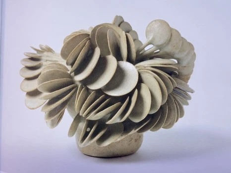 쿤 작가는 현대 도예의 변환점이라고 할 수 있는 형상과 유약에 대한 변화를 모두 받아들이며, 추상적인 형상의 도자를 만들어냈습니다. 형태가 전통적이지 않다 해서 전통적인 기법이 사용되지 않았던 것은 아니었는데요, 그는 전통적인 물레 성형에도 굉장히 능숙하여 그의 작품을 이루는 오브제들은 물레를 통해 만들어졌습니다. 눈으로 보기에 물레를 통해 만들어졌을 거라 짐작되지 않는 작품들도 물레에서 탄생한 작품들인 거죠. 여성 작가로서 그 당시 예술계에서 선구자로 불리다니,,멋있어요 누나.