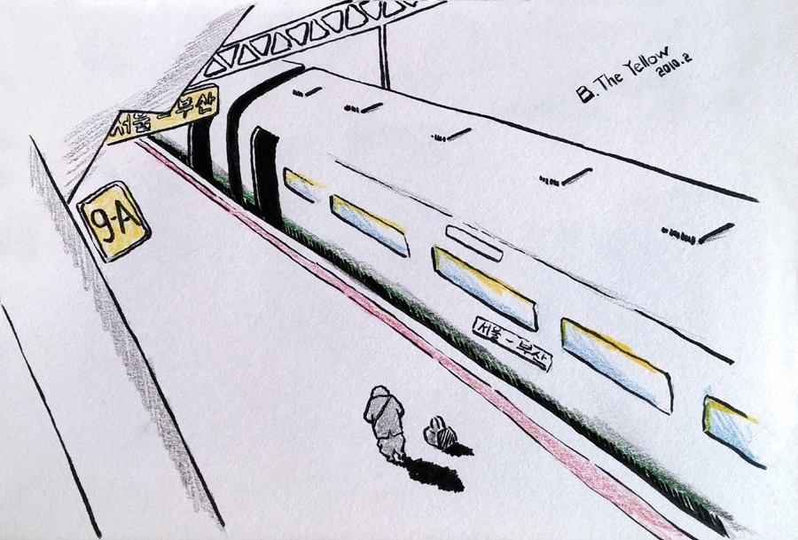 늙은 어미 뒷모습이 까끌거려 두 눈 질끈 안타까움 발끝으로 비벼 뭉개고