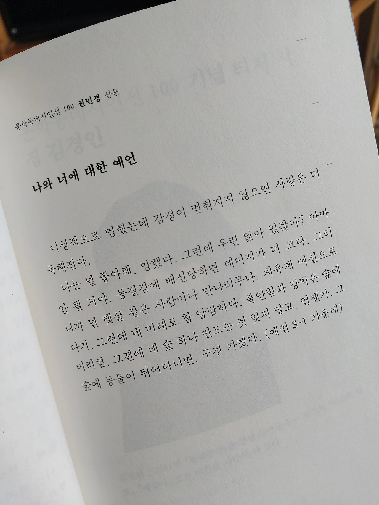 나는 널 좋아해. 망했다. 그런데 우린 닮아 있잖아? 아마 안 될 거야. 동질감에 배신당하면 데미지가 더 크다. 그러니까 넌 햇살 같은 사람이나 만나려무나. 치유계 여신으로다가. 그런데 네 미래도 참 암담하다. 불안함과 강박은 숲에 버리렴. 그전에 네 숲 하나 만드는 것 잊지 말고. 언젠가, 그 숲에 동물이 뛰어다니면, 구경 가겠다.