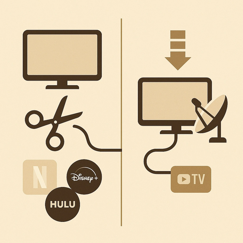코드 커팅은 케이블 TV 요금 상승, 맞춤형 콘텐츠에 대한 수요 증가, 저렴하고 다양한 스트리밍 서비스의 등장, 그리고 젊은 세대의 TV 시청 감소가 맞물려 나타난 현상이다. 유료 TV 가입자가 급감하고 방송사와 플랫폼이 광고와 구독 모델을 바꾸는 계기가 되었으며, OTT 간 경쟁을 촉발했다. 케이블TV나 위성방송을 완전히 해지하고 넷플릭스, 디즈니+, 유튜브TV, 훌루 같은 OTT 서비스만 이용하는 소비 행태가 대표적이다.