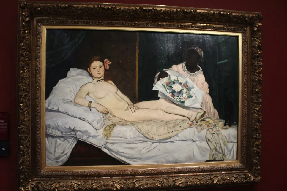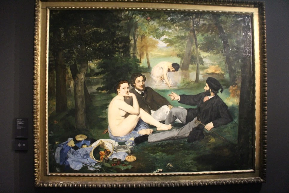 옥외의 밝음과 형태를 집어삼키는 내부의 어두움 사이의 대조를 감행하게 자극한 것은 분명히 고야의 그림들 중 하나였다. 그러나 마네는 60년 전에 고야가 행했던 것보다 훨씬 더 멀리까지 이 같은 탐사를 수행했다. - 곰브리치 서양미술사