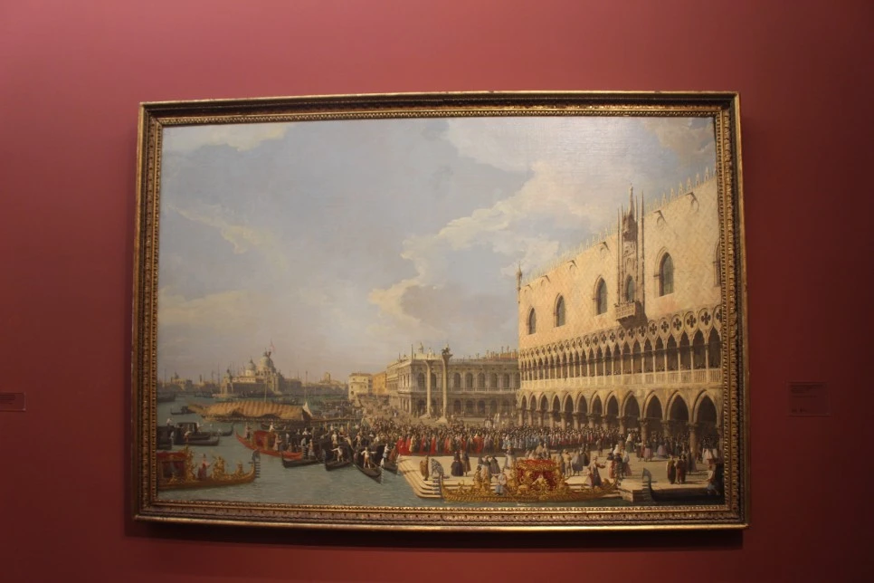 베니스의 두칼레 궁전 앞으로 모인 성직자로 보이는 사람들과 곤돌라를 타고 온 사람들의 모습이 묘사돼 있는데 베네치아 총독의 어떤 모임을 그린 그림 같다. (확인되지 않음.^^) 전에 가봤던 장소를 묘사한 그림은 분명 느낌이 남다르다.