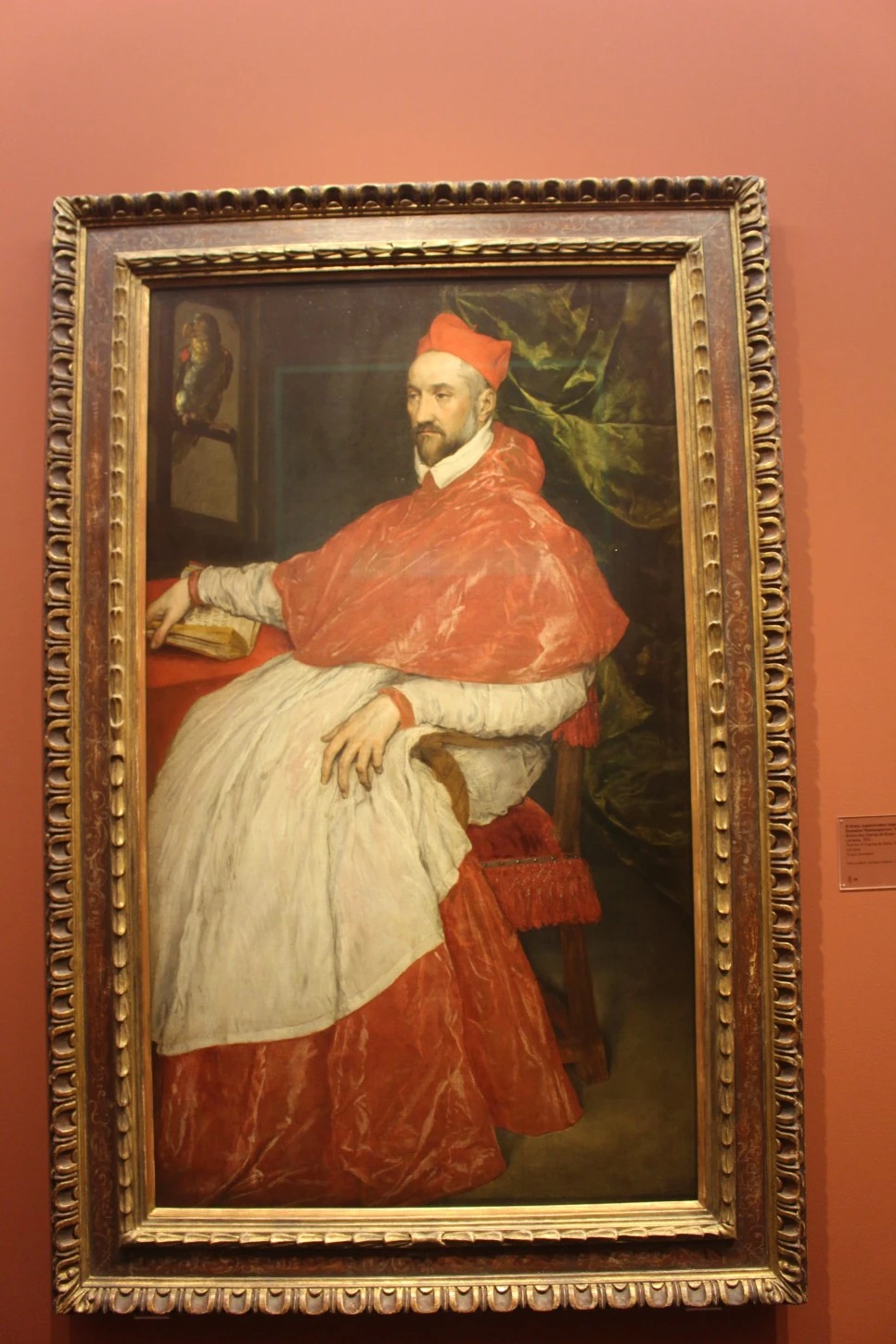 카톨릭 교회 추기경의 위엄을 묘사하려 창밖의 독수리를 그렸지 싶다.