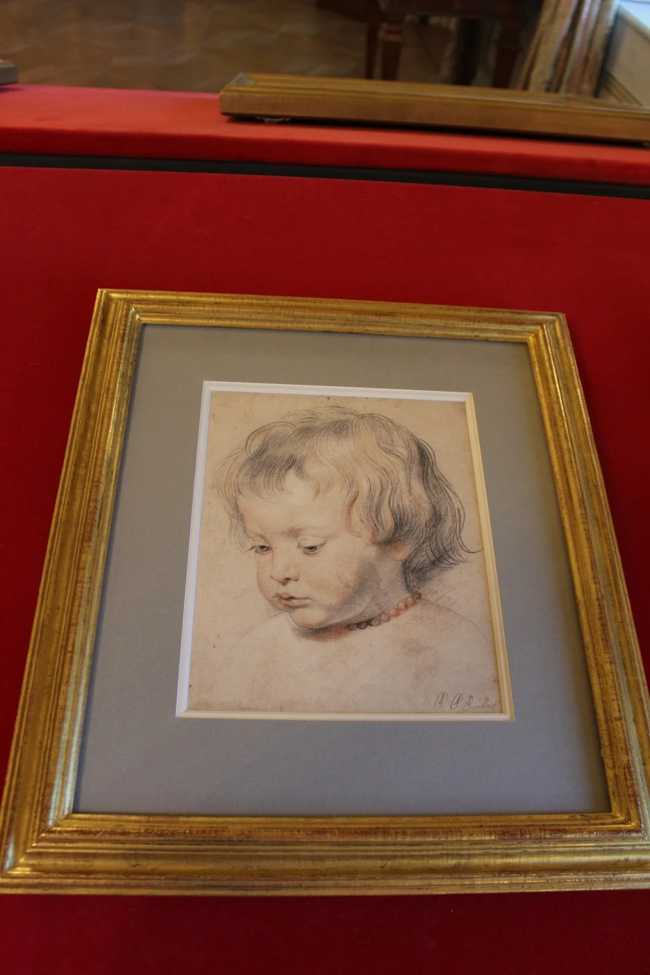 검은색, 붉은색 초크로 슥슥 그린 초상화인데 포동포동한 아이의 피부와 발그레한 뺨 등 생동감이 넘친다.