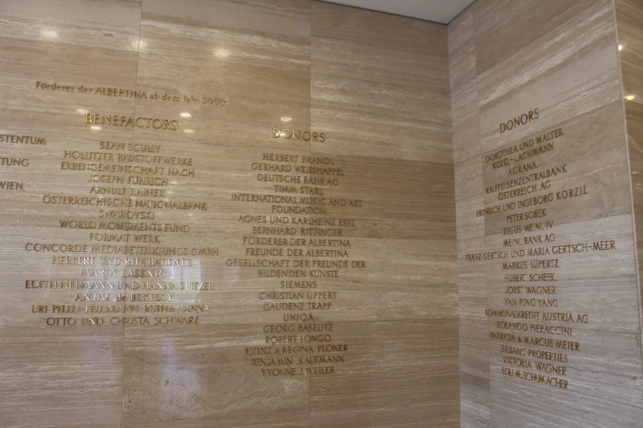 후원자 명단에 개인 이름도 보이고 스왈롭스키(Swarovski)와 같은 기업명도 보인다. 마찬가지로 기부자 명단에 개인도 있고, Siemens 과 같은 기업체도 보인다.