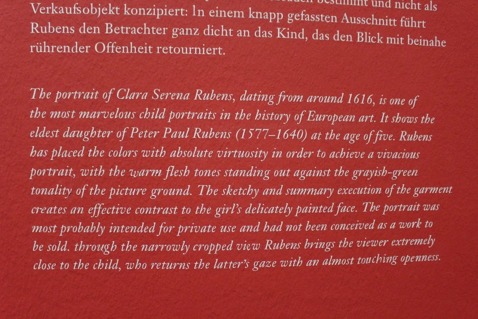 루벤스의 큰 딸 Clara의 다섯 살적 모습으로 색상의 배치를 통해 생동감 있는 아이의 얼굴을 부각시켰다.