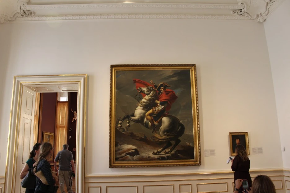 백마를 타고 진두지휘하는 시대의 영웅, 자크 루이 다비드는 나폴레옹 1세의 영웅적인 면모를 어쩜 이렇게 짱 멋지게 묘사할 수 있단 말이더냐! 직관하게 되면 이 작품이 풍기는 강한 인상에 다들 넋놓고 쳐다볼 수밖에 없으니..
