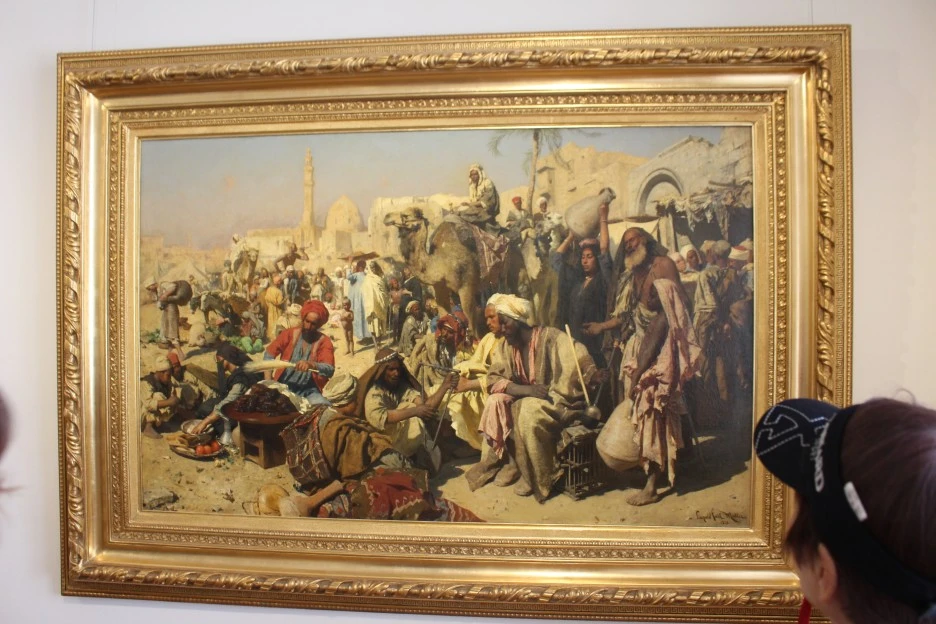 낙타가 보이고, 모스크와 탑이 있는 것으로 보아 중동의 사막에서 상인들의 장이 열린 것 같다.