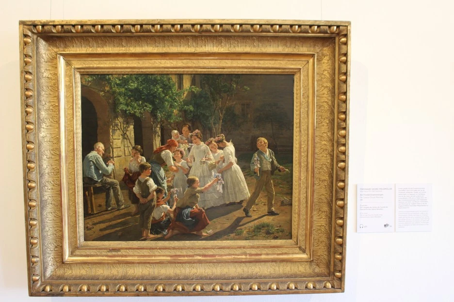 그러나 이러한 모습도 삶의 일부분임을., Waldmüller는 축제 아침, 아름다운 자연과 인간의 조화, 그리고 축제의 들뜬 분위기를 잘 묘사했다.