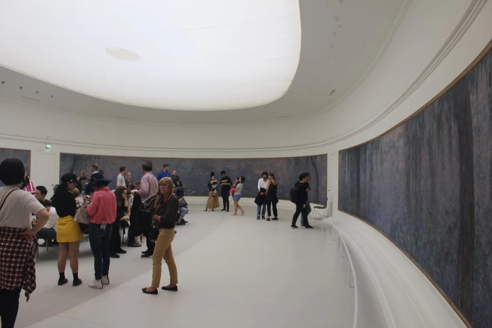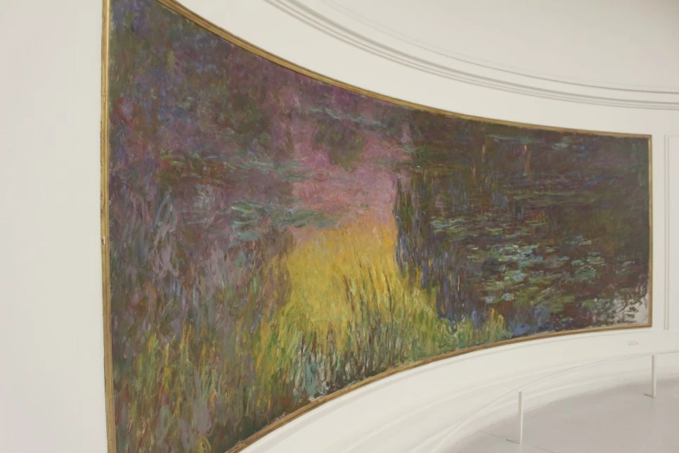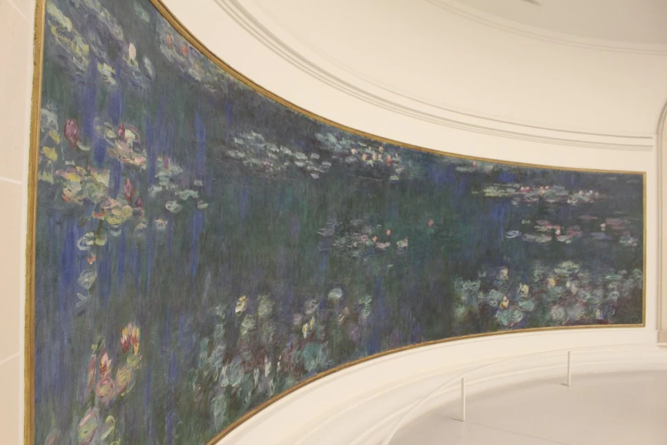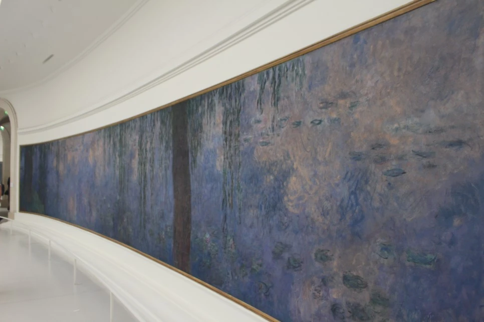 정원 연못에 수련을 심고 시시각각 변화하는 수면의 빛을 캔버스에 담았다. 제1차 세계대전 후 수련 작품 두 점을 국가에 기증하려고 했으나 그의 지인이었던 클레망소 총리가 총 여덟 점의 수련 연작을 요청하게 되었고, 전쟁에 상처를 입은 국민들을 위로하려는 뜻에서 이러한 대작*이 탄생하게 된 것이다. (작품의 길이를 총 합치면 100m 나 된다고.)